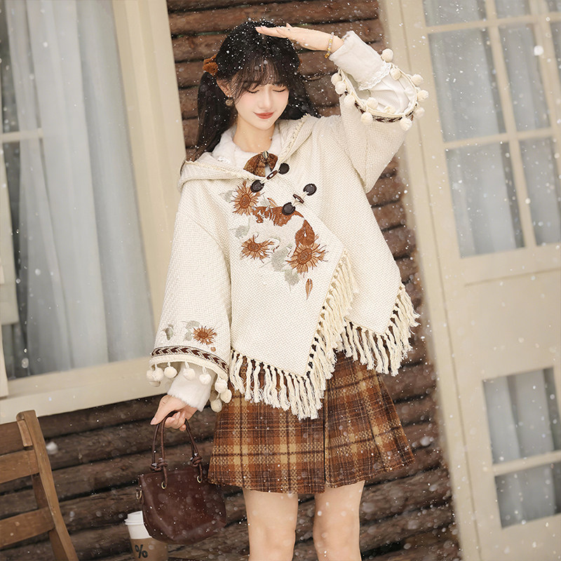 淘宝设计师的礼物,设计师的礼物原创暖绒方格汉服女新中式冬装日常拜年新年战袍套装