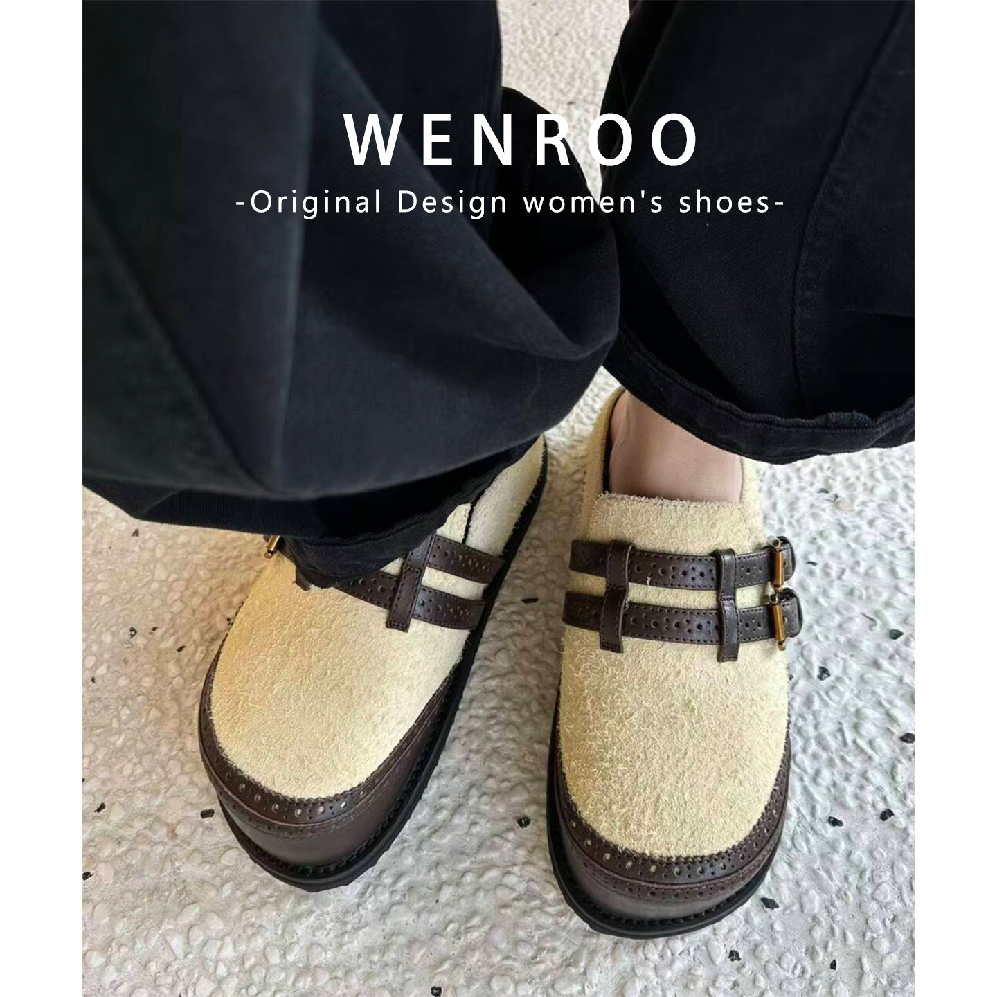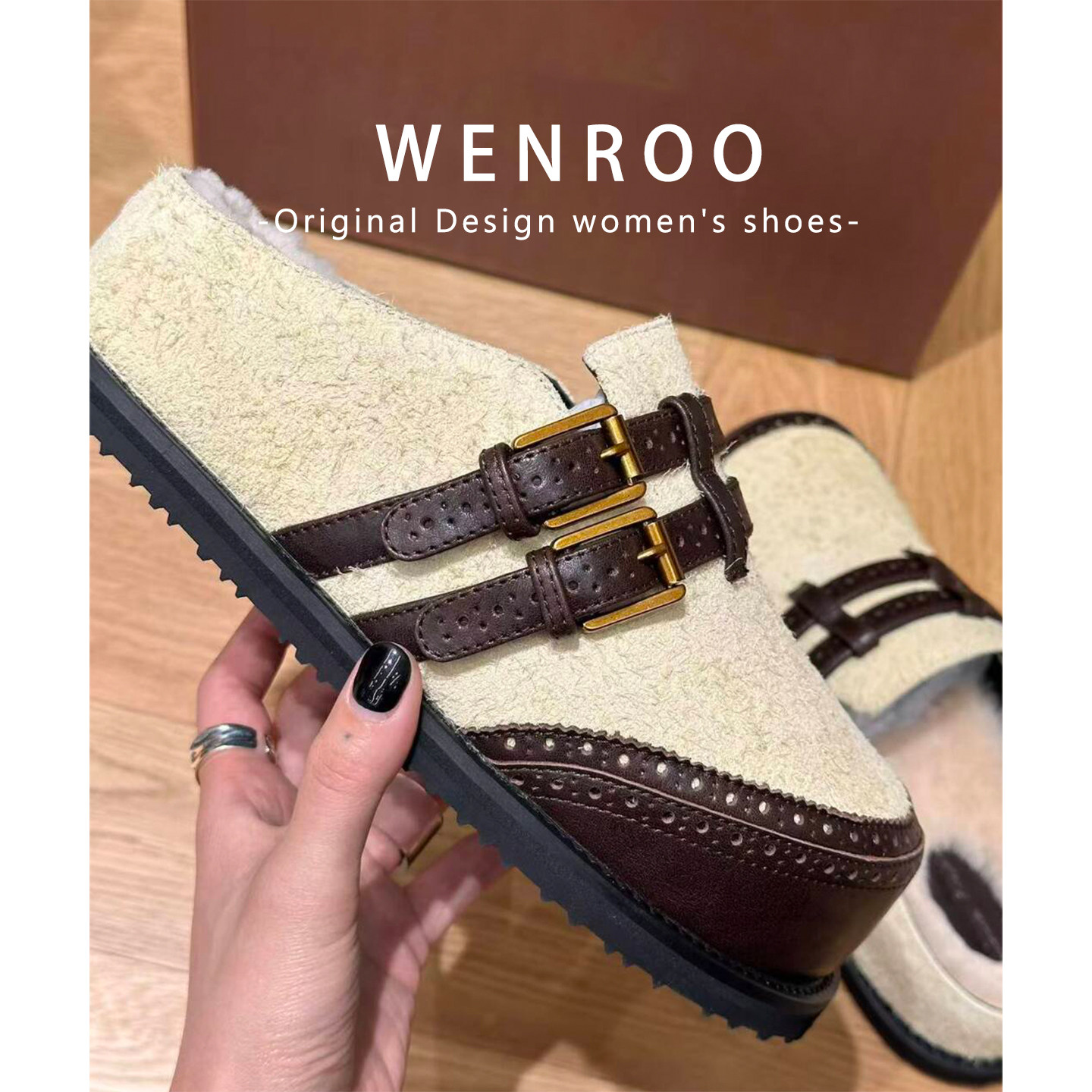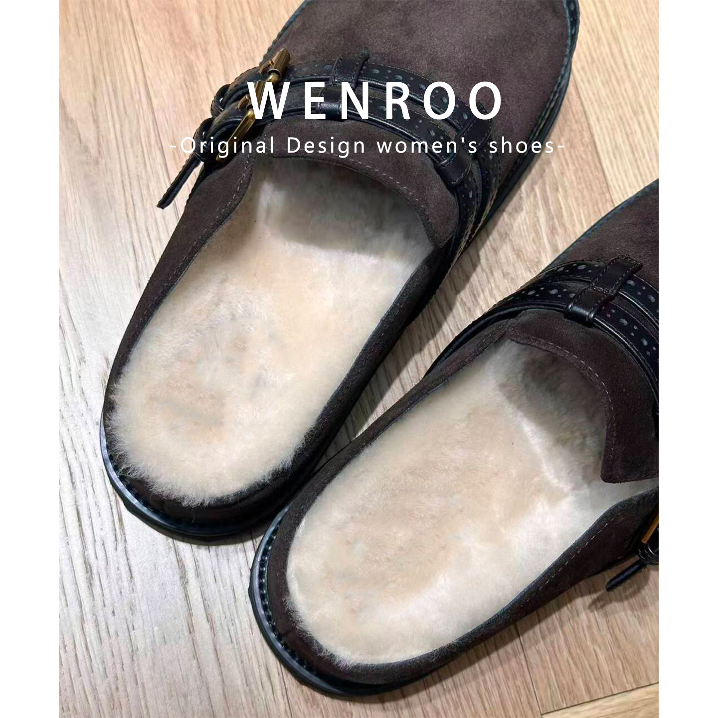 淘宝WENROO温柔家女鞋,布洛克真皮厚底加绒包头拖鞋外穿