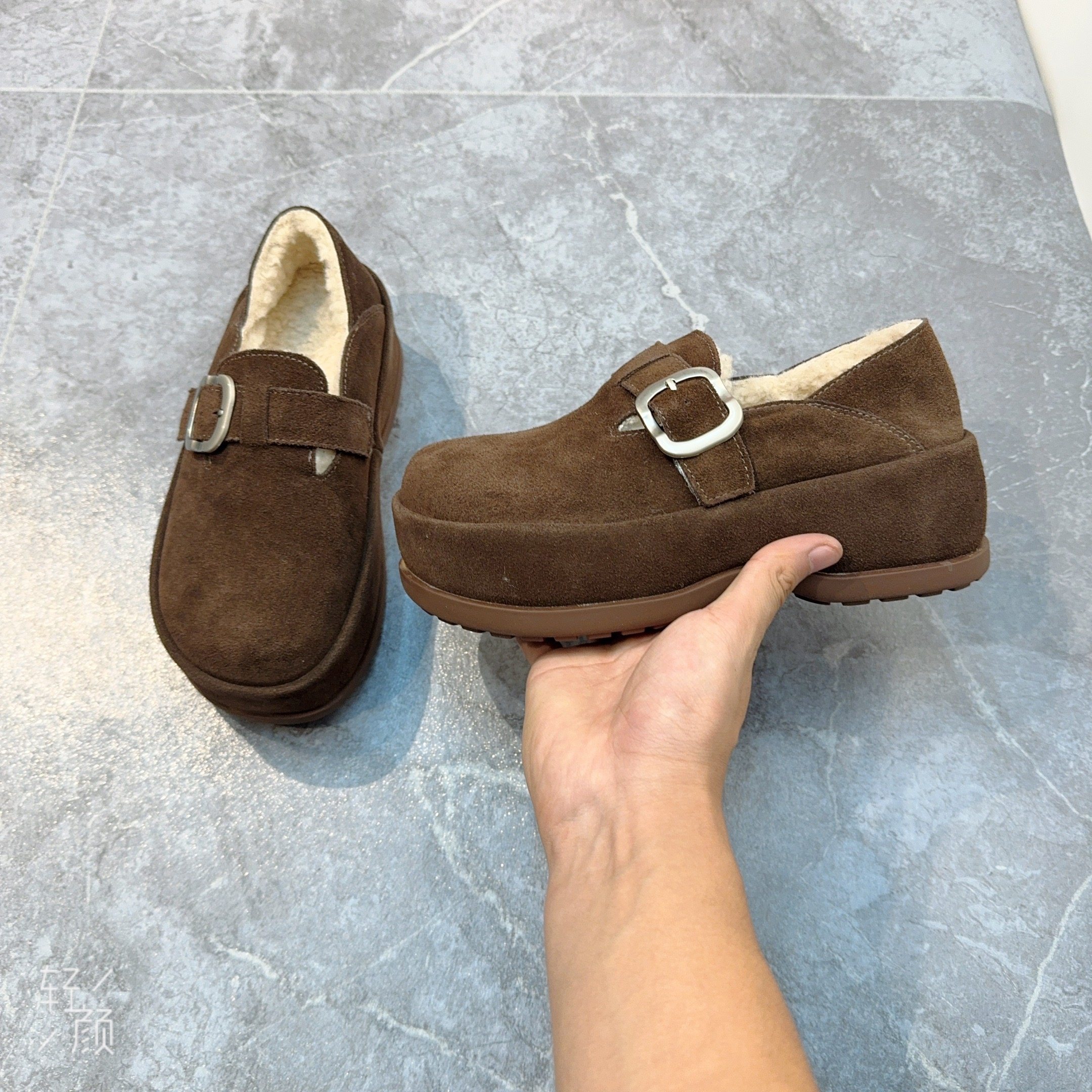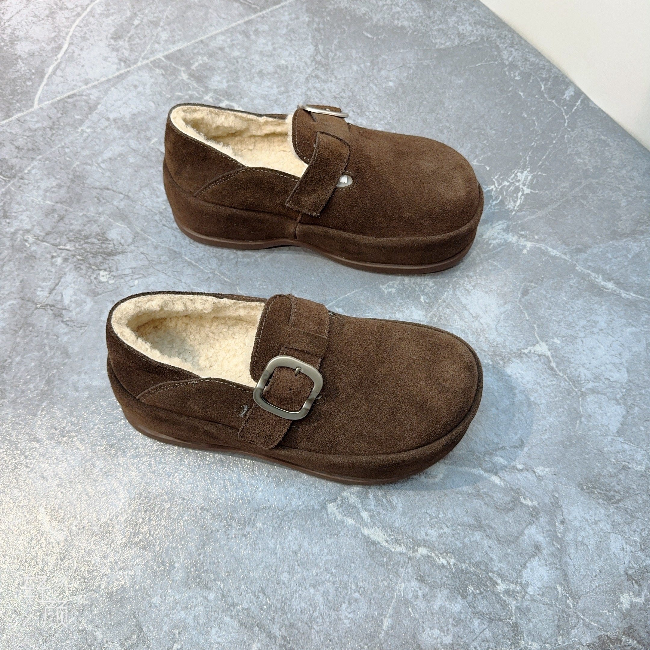淘宝煌垕鞋业,复古真皮厚底勃肯鞋女2025冬新款小个子增高加绒一脚蹬松糕乐福鞋