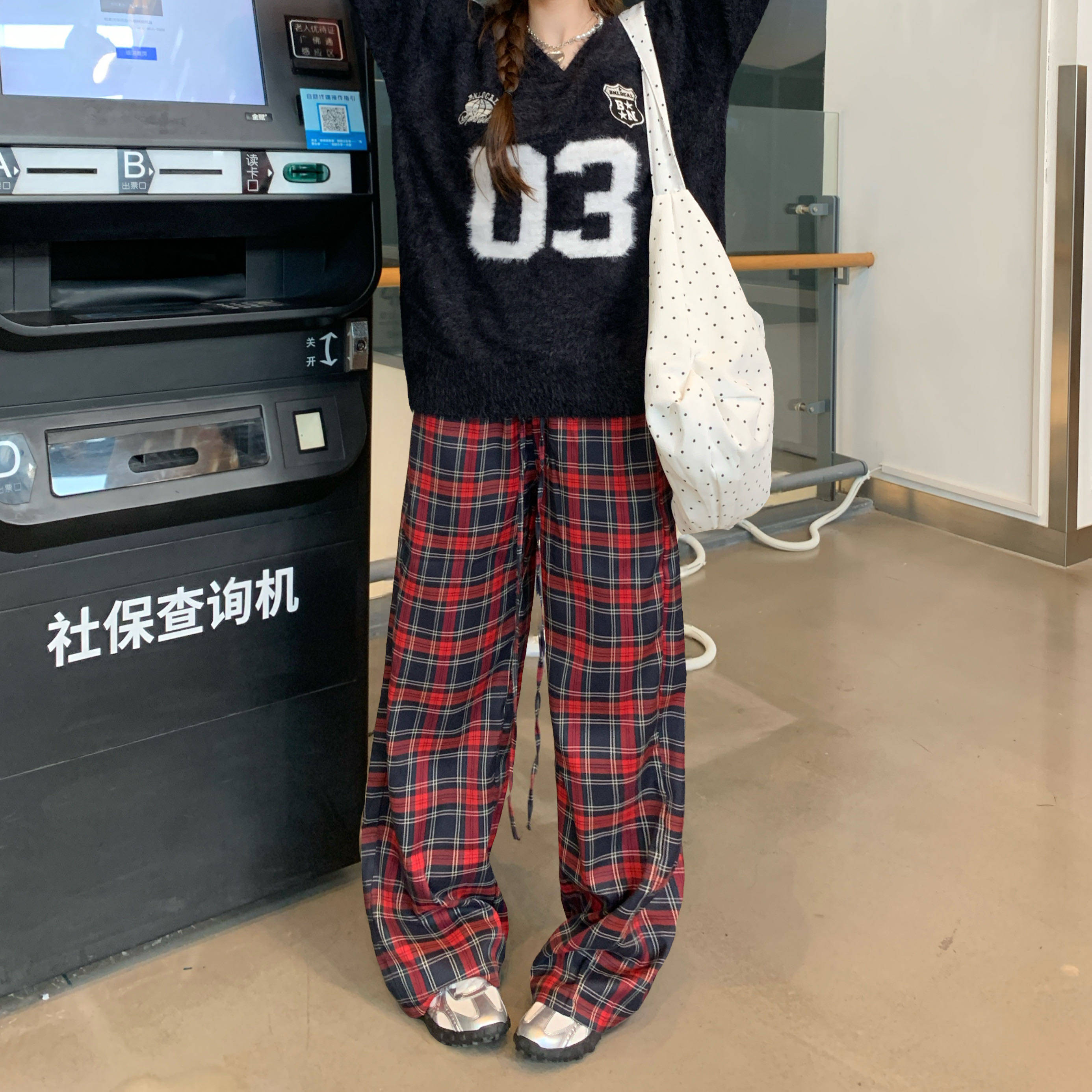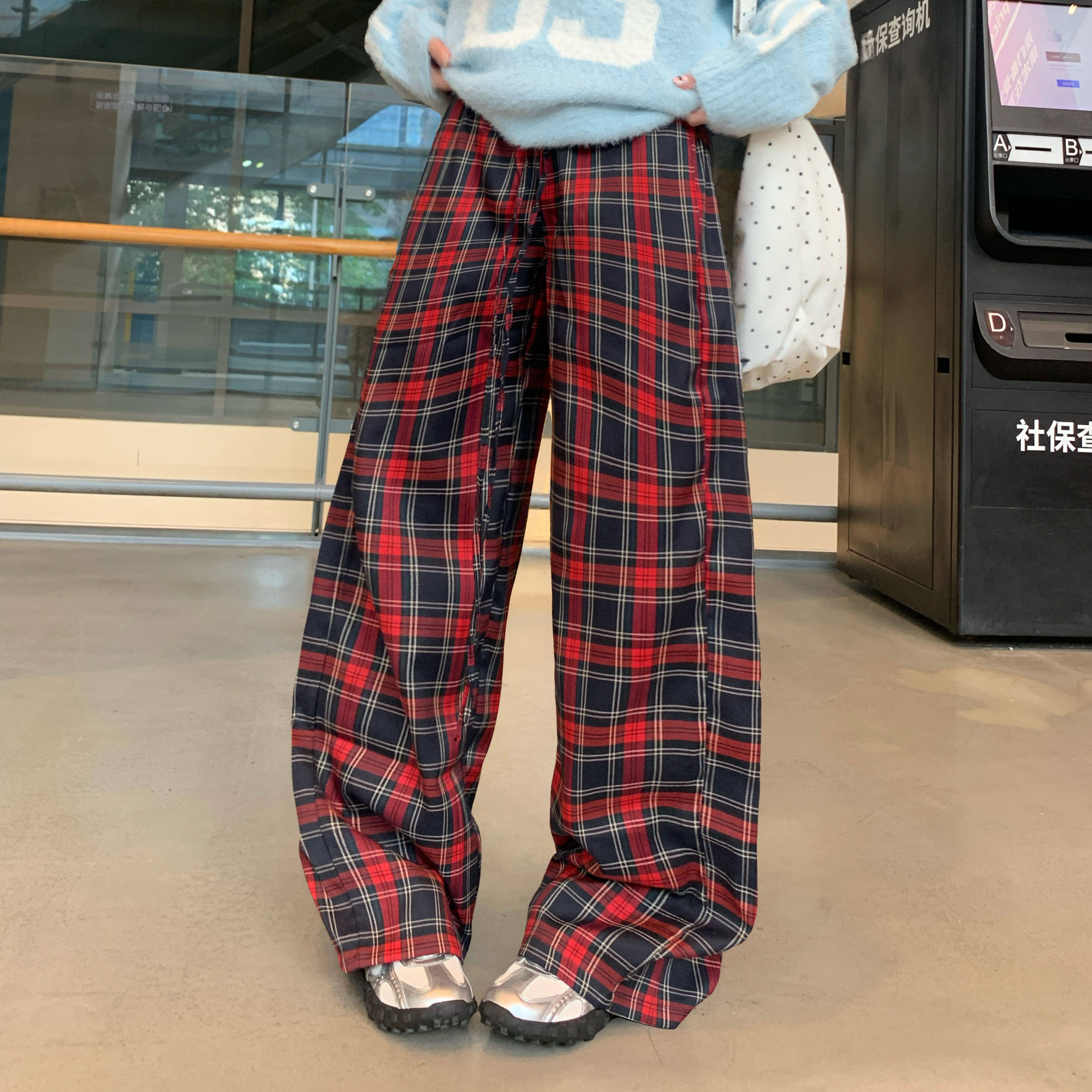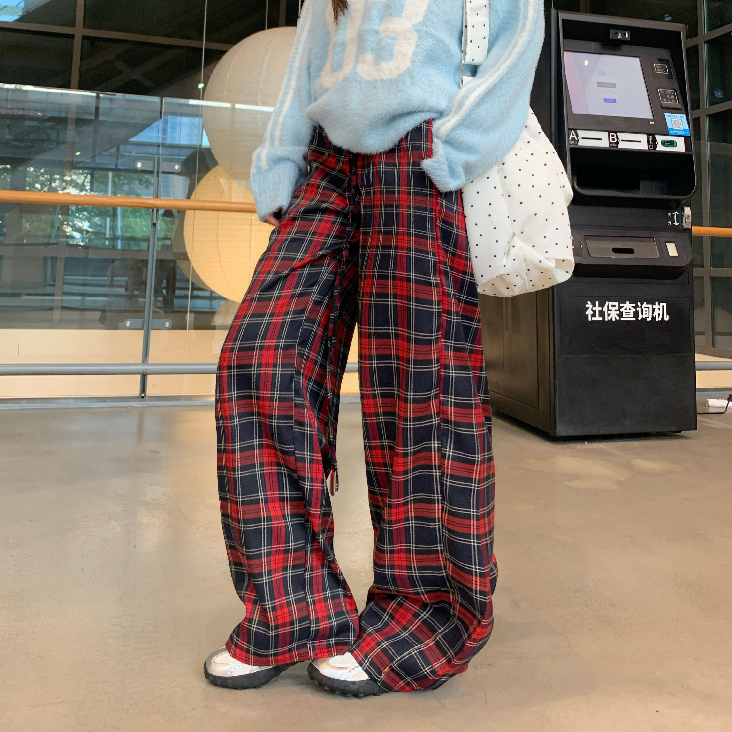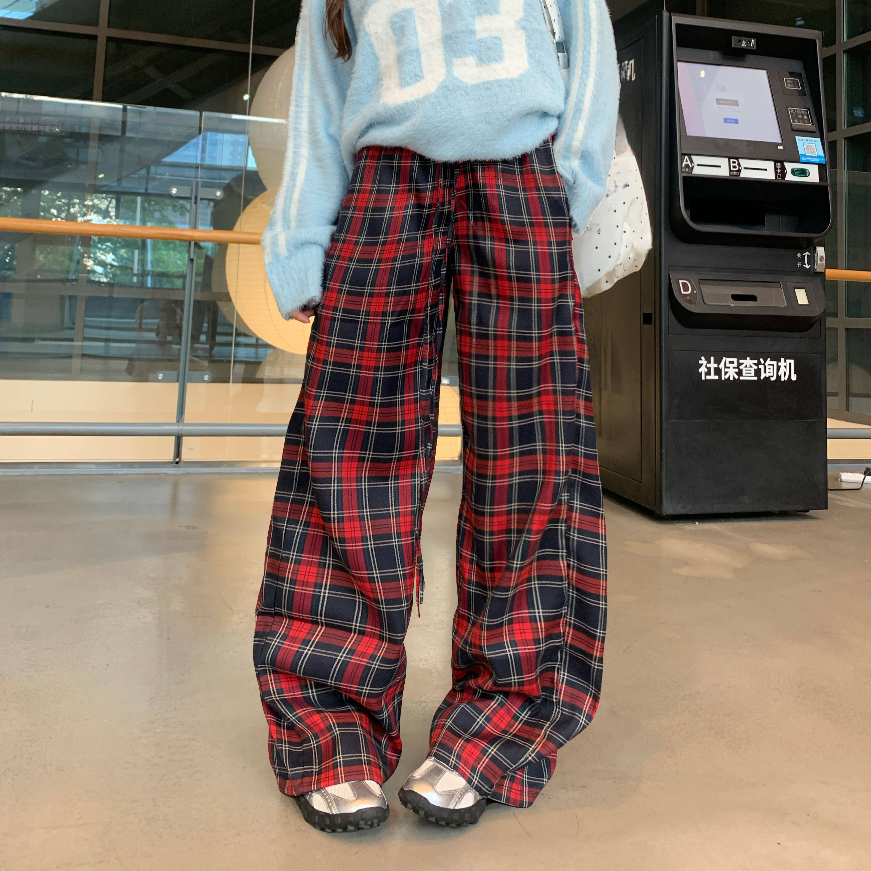 淘宝Amoeba,美式红格纹宽松休闲格子裤