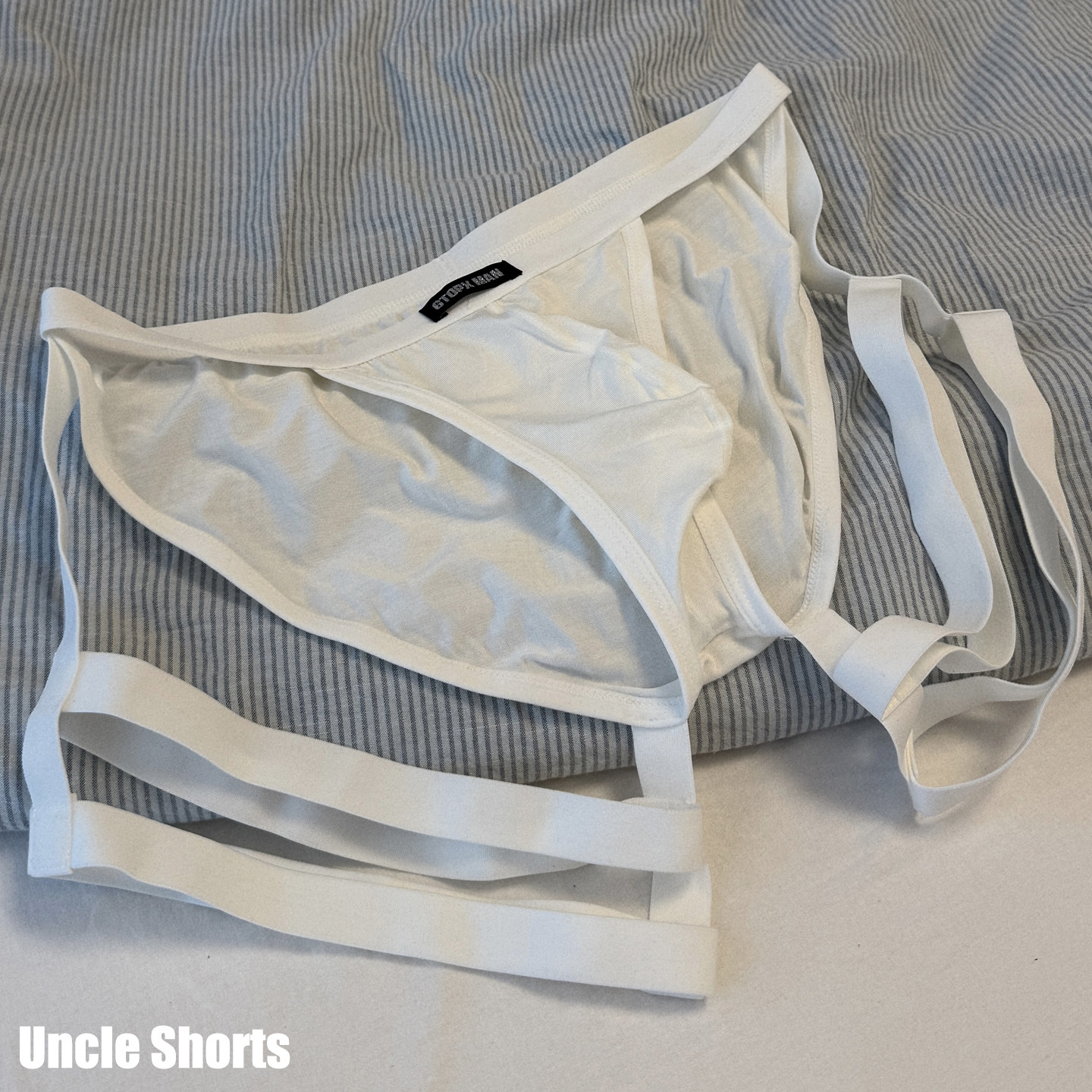 淘宝Uncle Shorts,白色禁欲系商务特色绑带三角内裤
