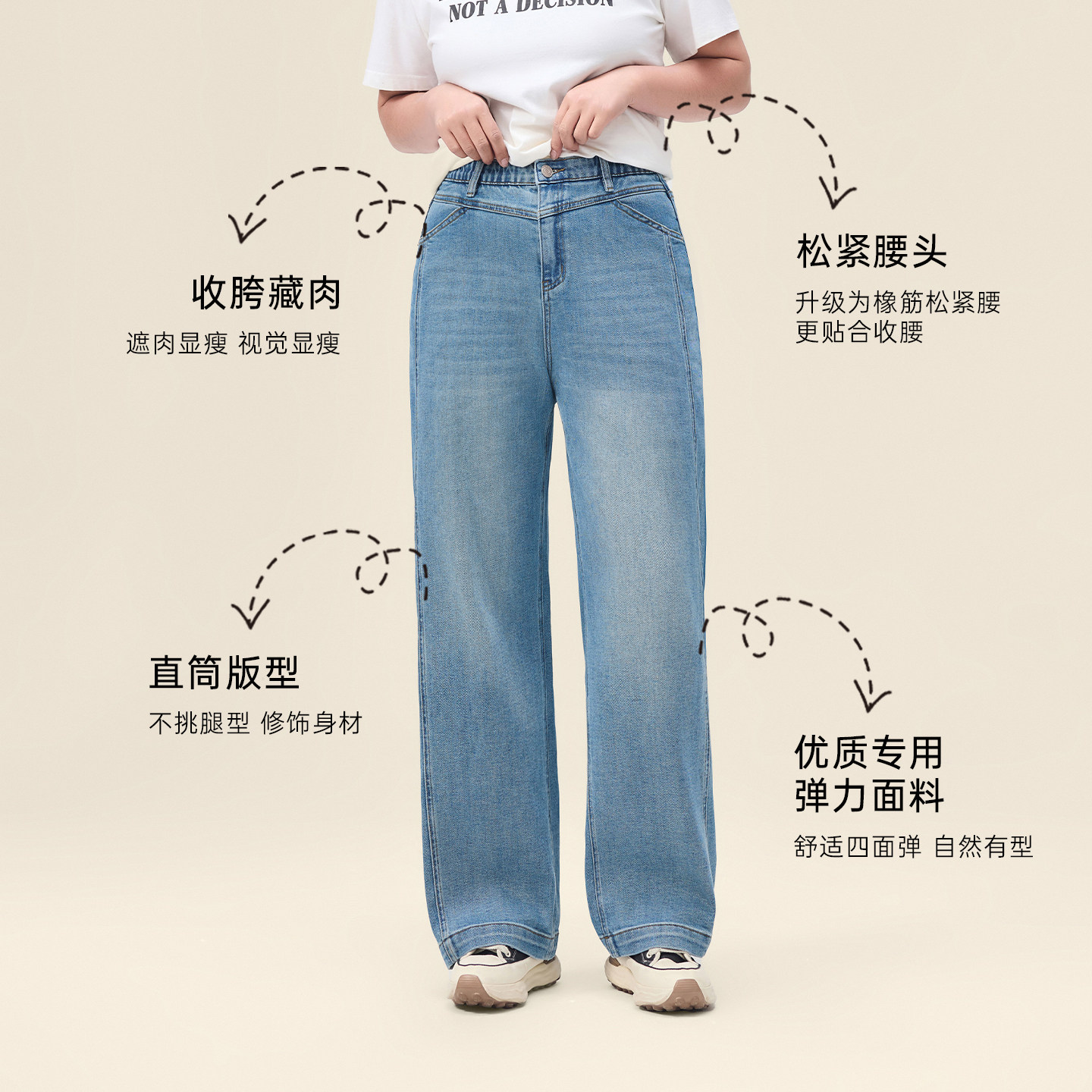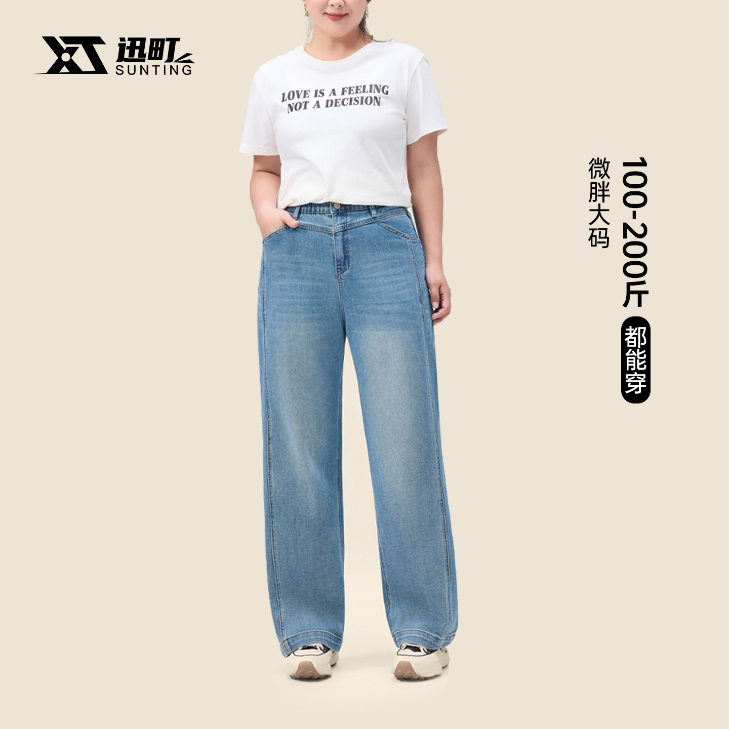 天猫迅町女装旗舰店,微胖梨型大码女装宽松直筒弹力牛仔裤2026春季新款