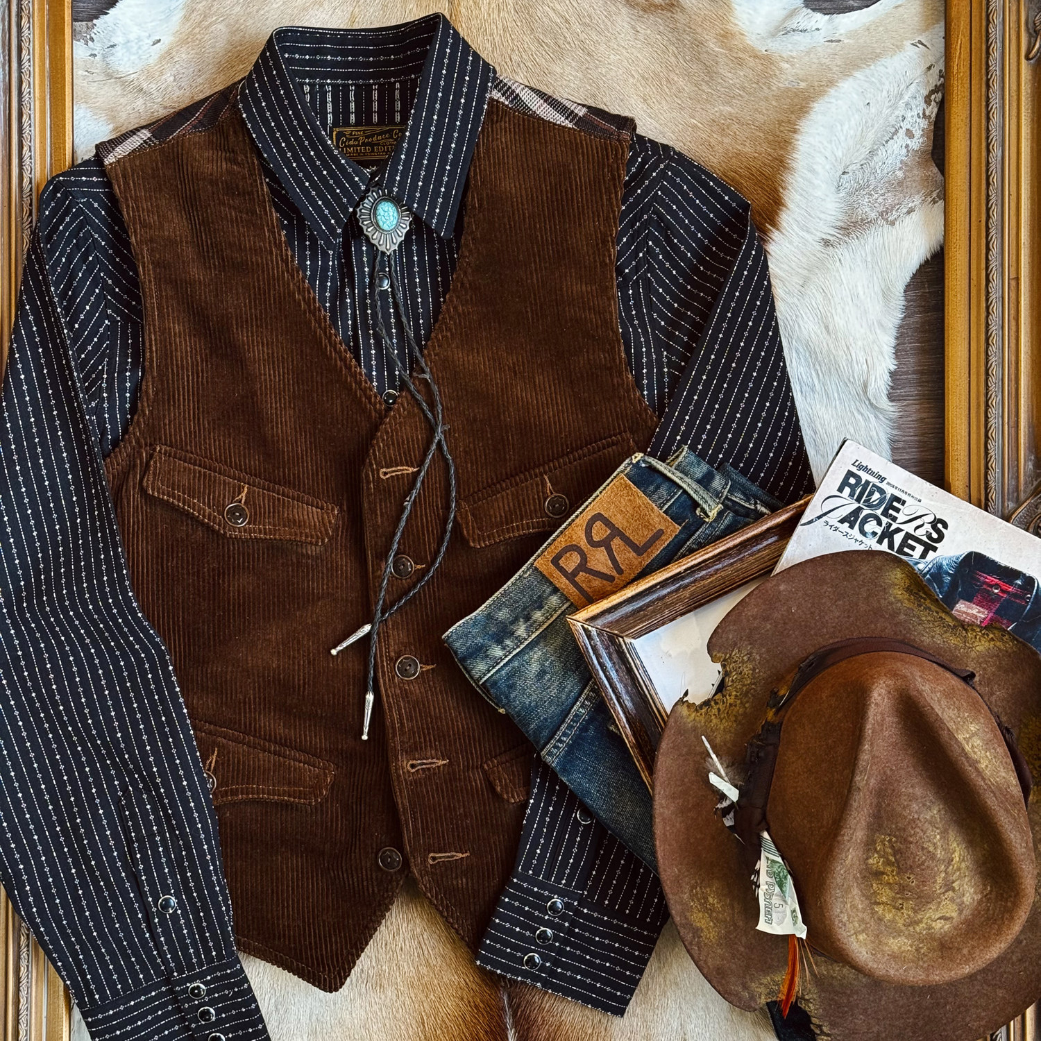 淘宝刺度製造,2026春装首发~美式复古非RRL灯芯绒猎装马甲绅装V领修身短款马夹