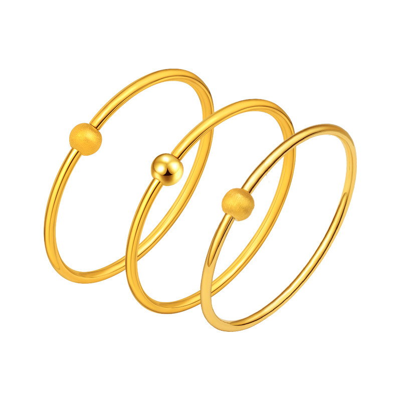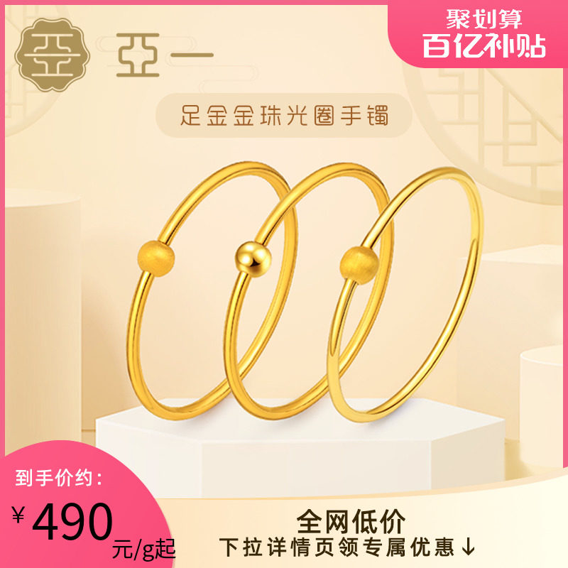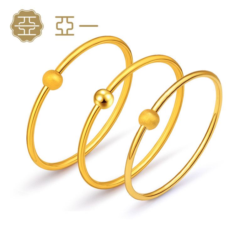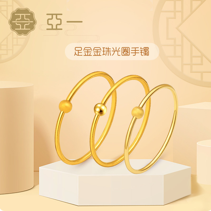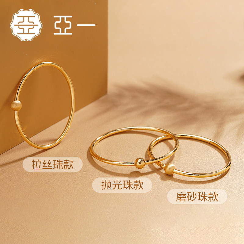 天猫亚一珠宝旗舰店,亚一足金经典素圈镯子,新款简约素圈 金珠开口手镯 情侣款