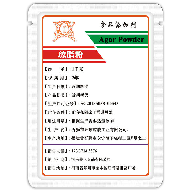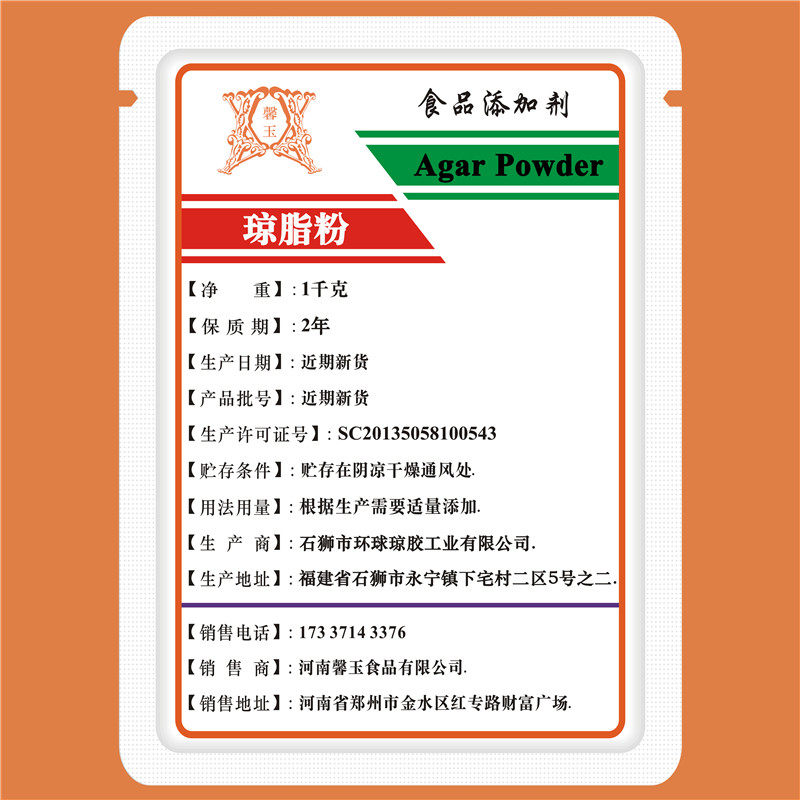 琼脂粉食品级寒天粉琥珀糖软糖果冻布丁冰淇淋饮料用增稠剂凝胶剂