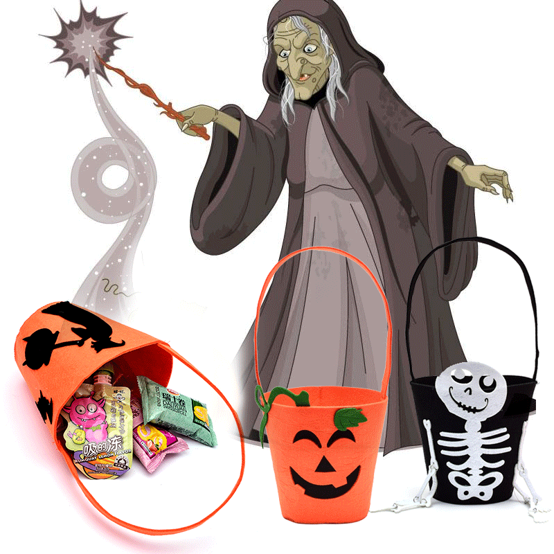 淘宝海丰羽毛工艺品,万圣节道具手提南瓜袋糖果提篮玩具