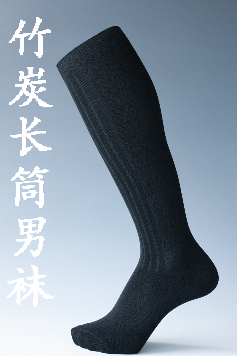 外贸原单竹炭纤维高筒薄款防臭及膝男袜春秋长筒西服日系黑色商务