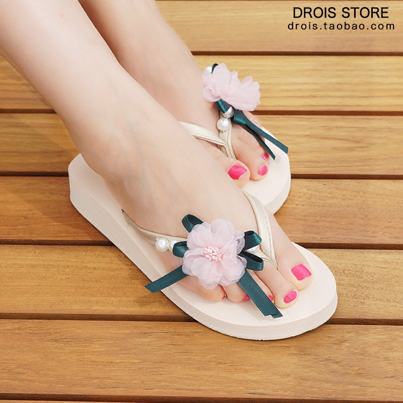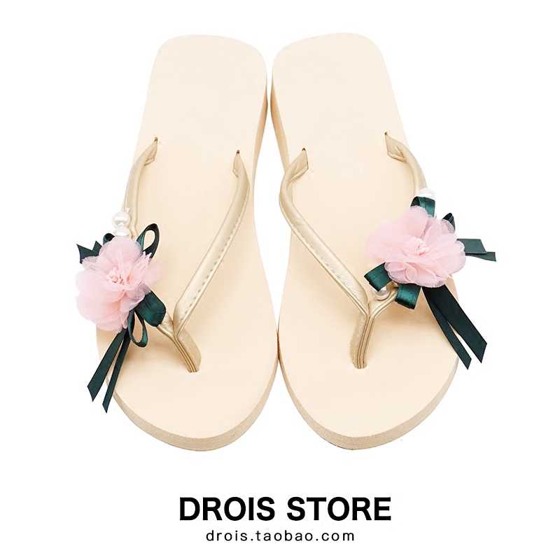 淘宝Drois store,花朵人字拖女夏外穿坡跟沙滩拖鞋