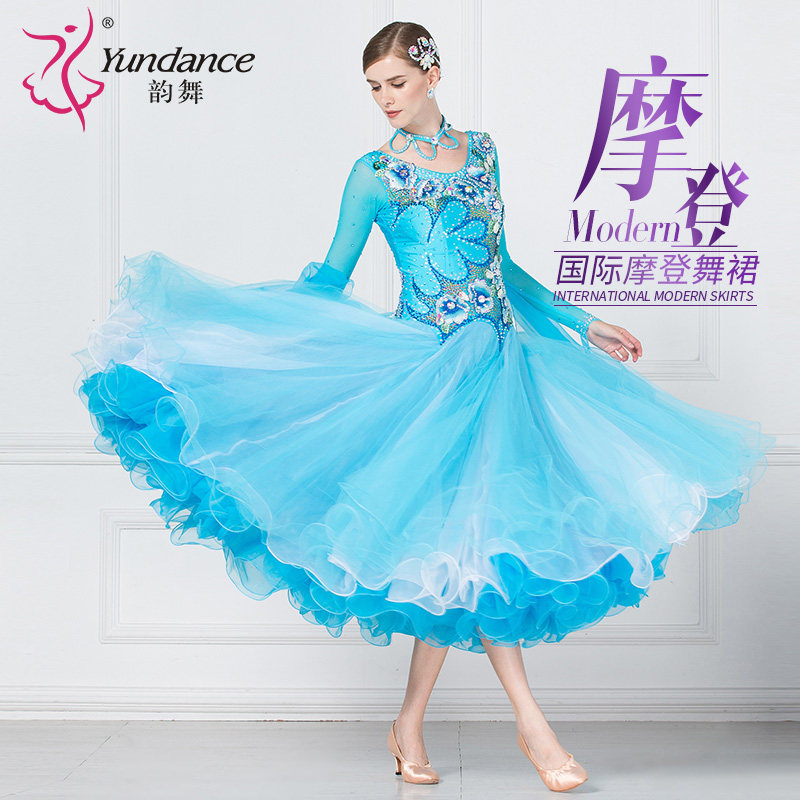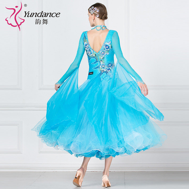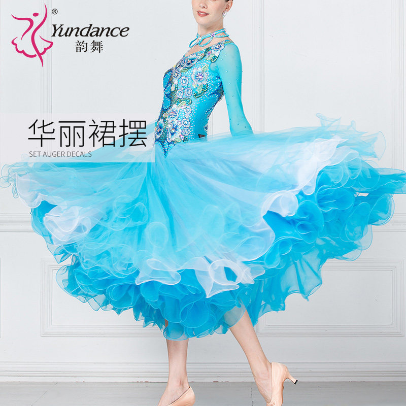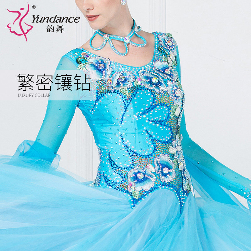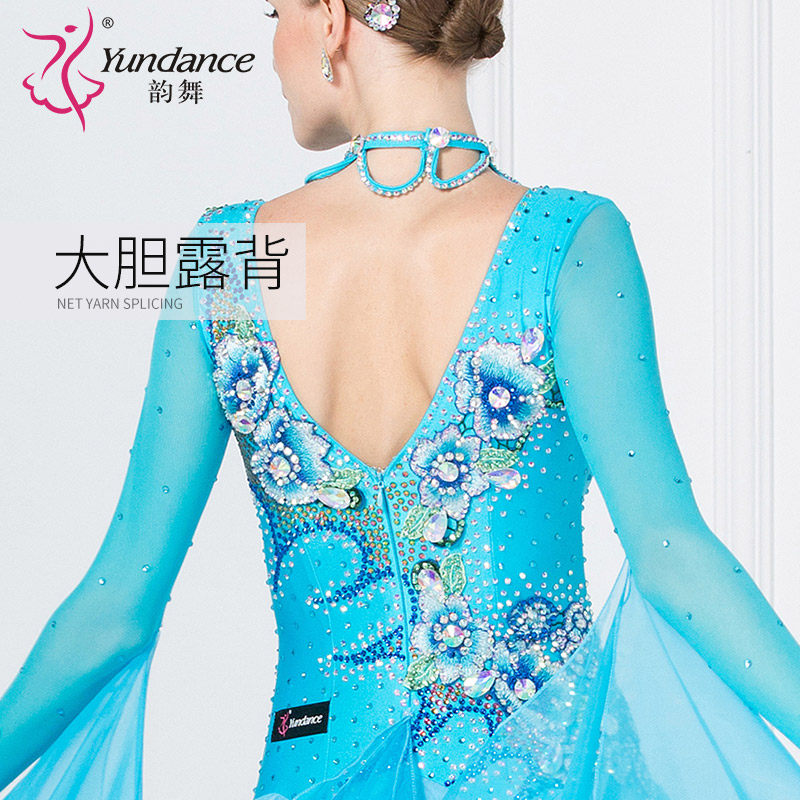 天猫yundance旗舰店,韵舞新款摩登舞大摆长裙演出演出服,彩钻领圈 大胆性感露背 量身定做