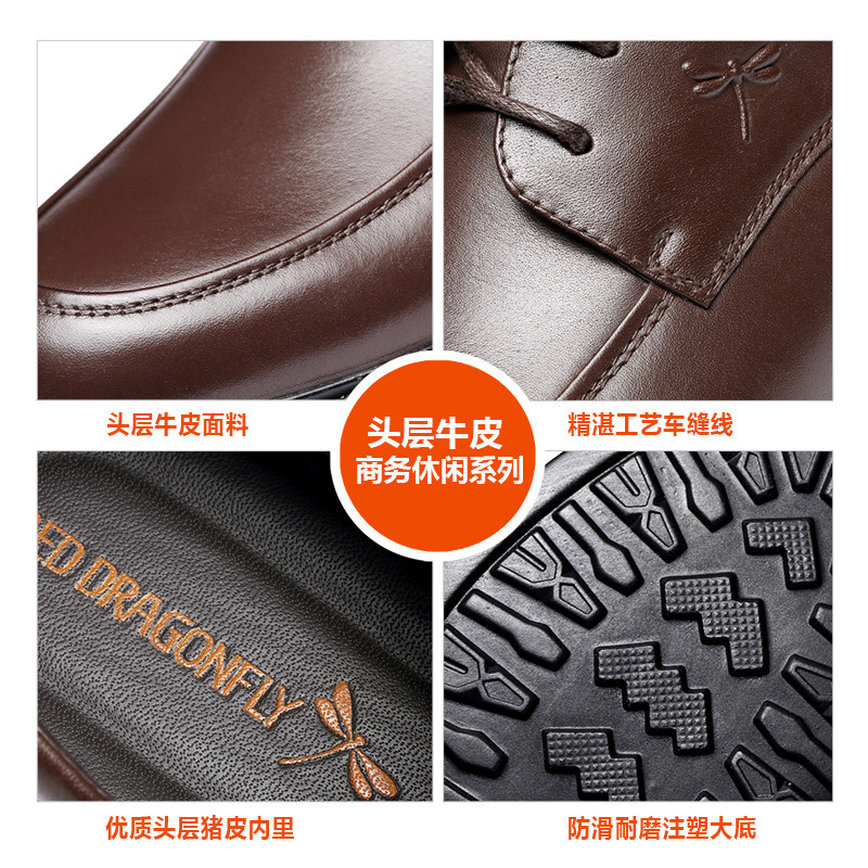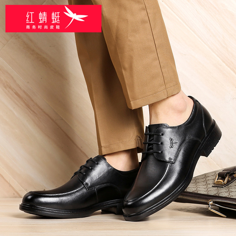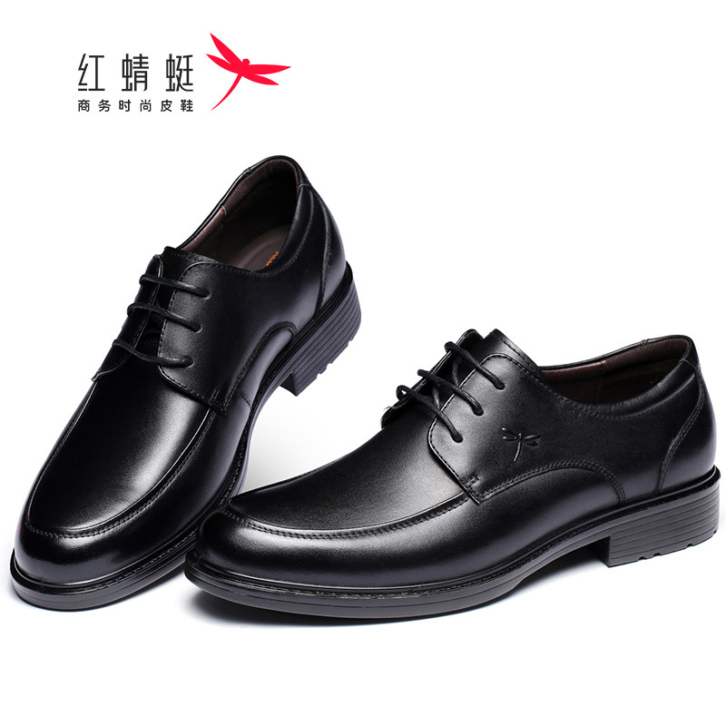 红蜻蜓皮鞋牛皮男鞋商务正装鞋系带春秋季男士休闲鞋圆头软皮透气
