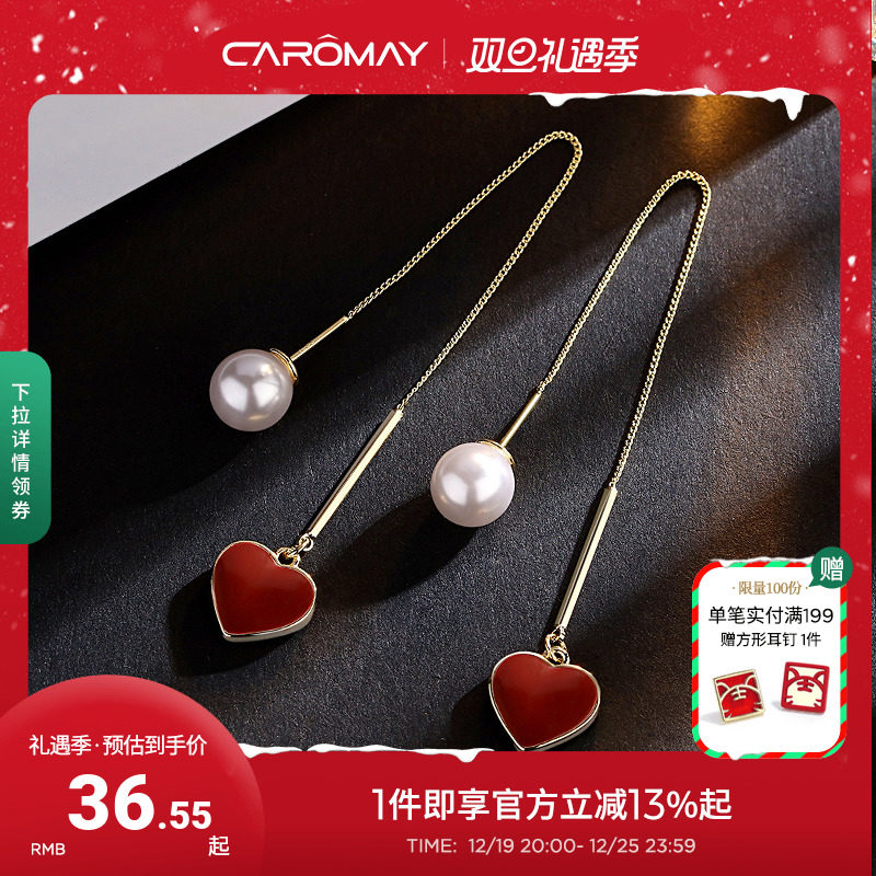 天猫caromay旗舰店,长款爱心耳线 多种佩戴 925银针 ins少女心