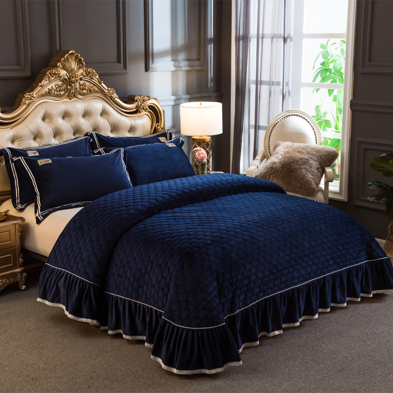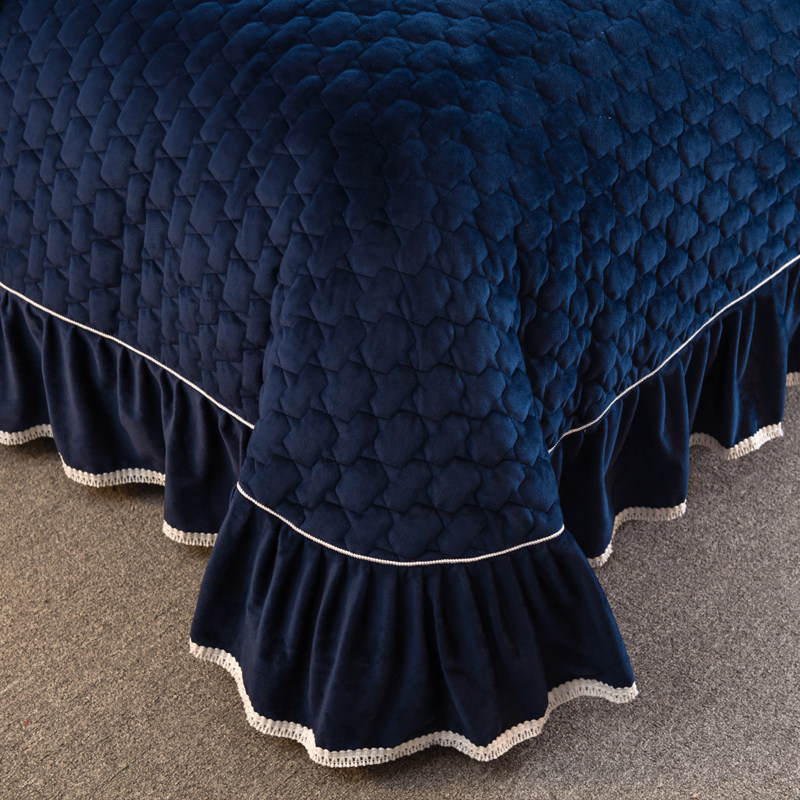 申牟家纺 水晶绒加绒床盖四件套加厚夹棉4件套床单床罩式秋冬保暖