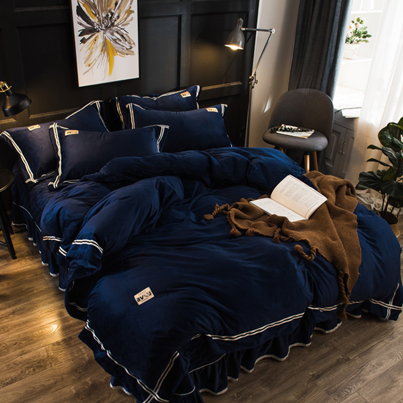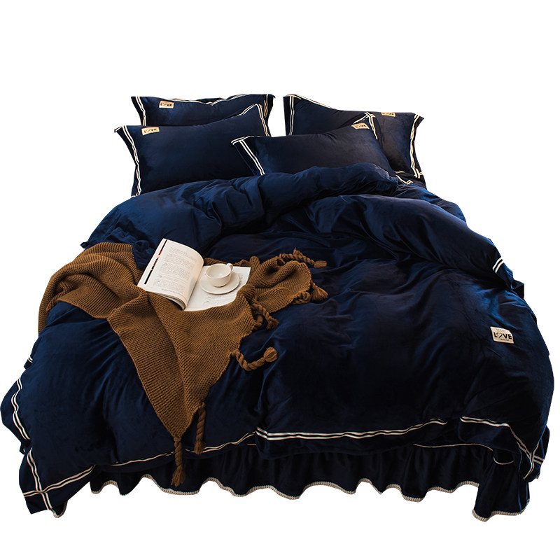 申牟家纺水晶绒加绒四件套加厚床盖