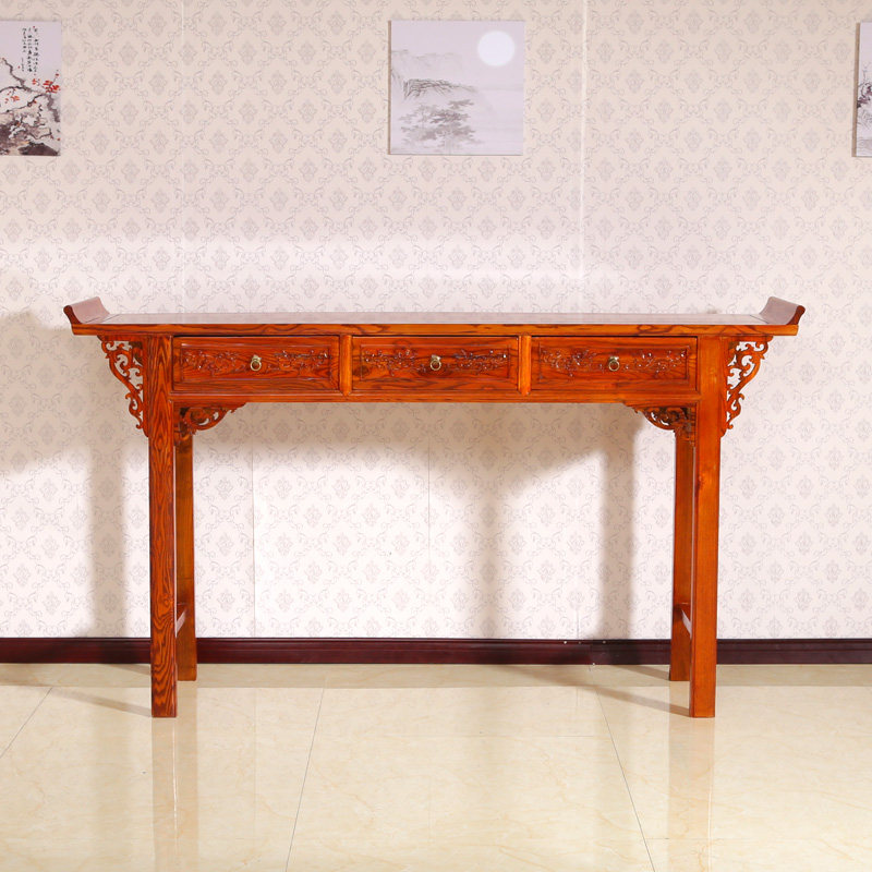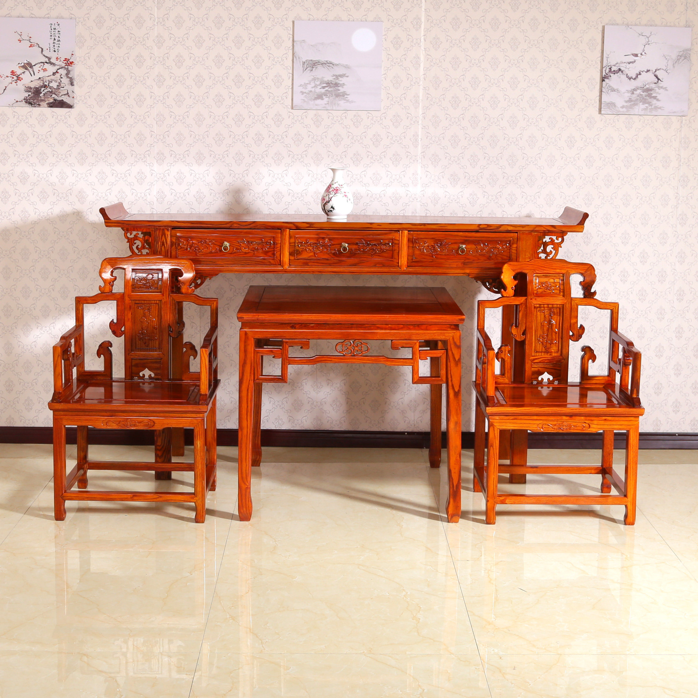 仿古小中堂四件套 六件套方桌太师椅 供桌三抽大条案供台神台榆木