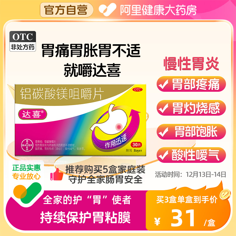 天猫阿里健康大药房,【达喜】铝碳酸镁片0.5g*20片/盒【3盒装】胃痛慢性胃炎胃酸胃炎胃胀