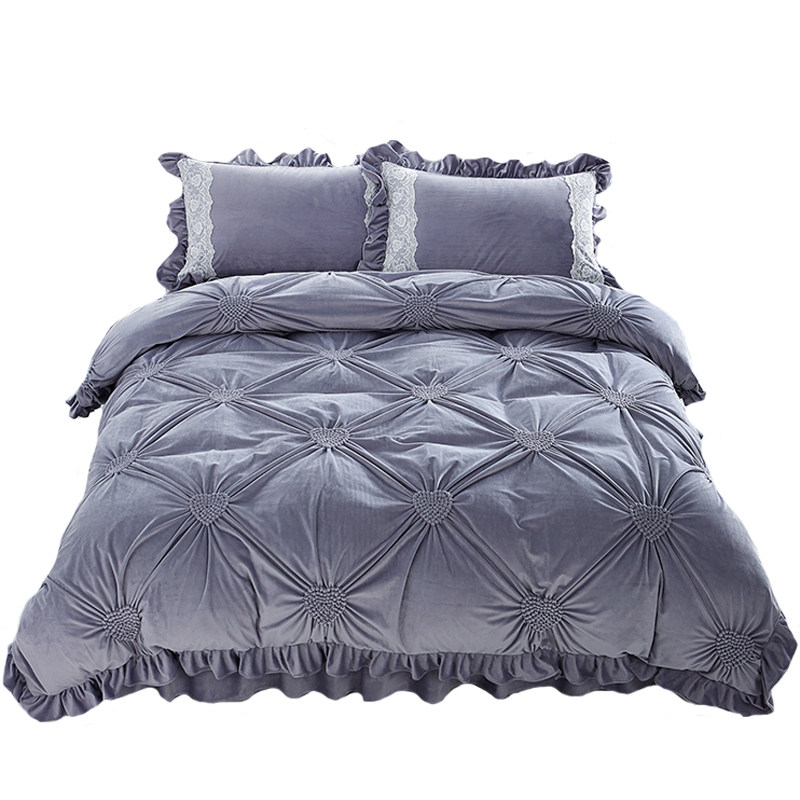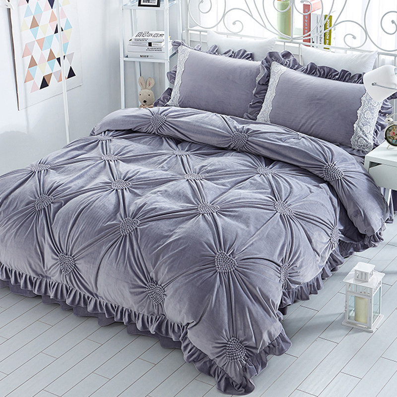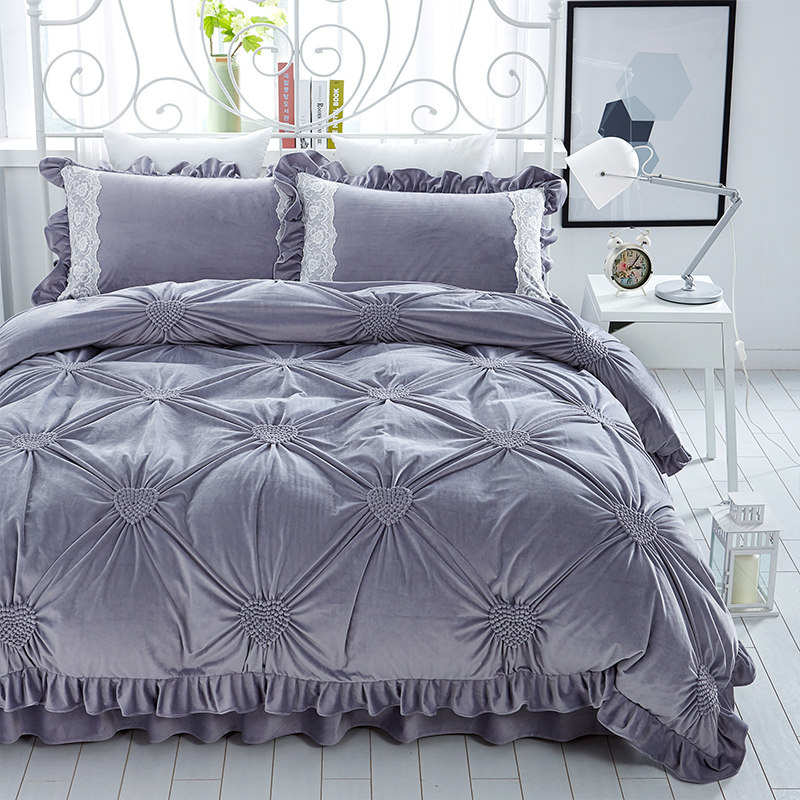 欧式冬季保暖珊瑚绒床上四件套牛奶绒公主加绒双面毛绒床裙法兰绒