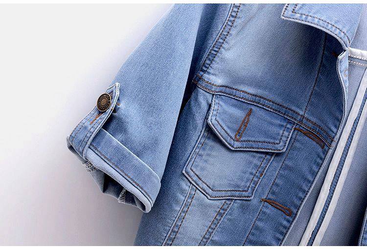 弹力薄款牛仔外套女2023春夏短款可调节五分袖开衫修身上衣小披肩