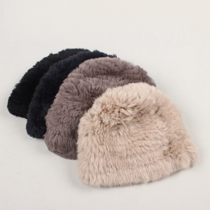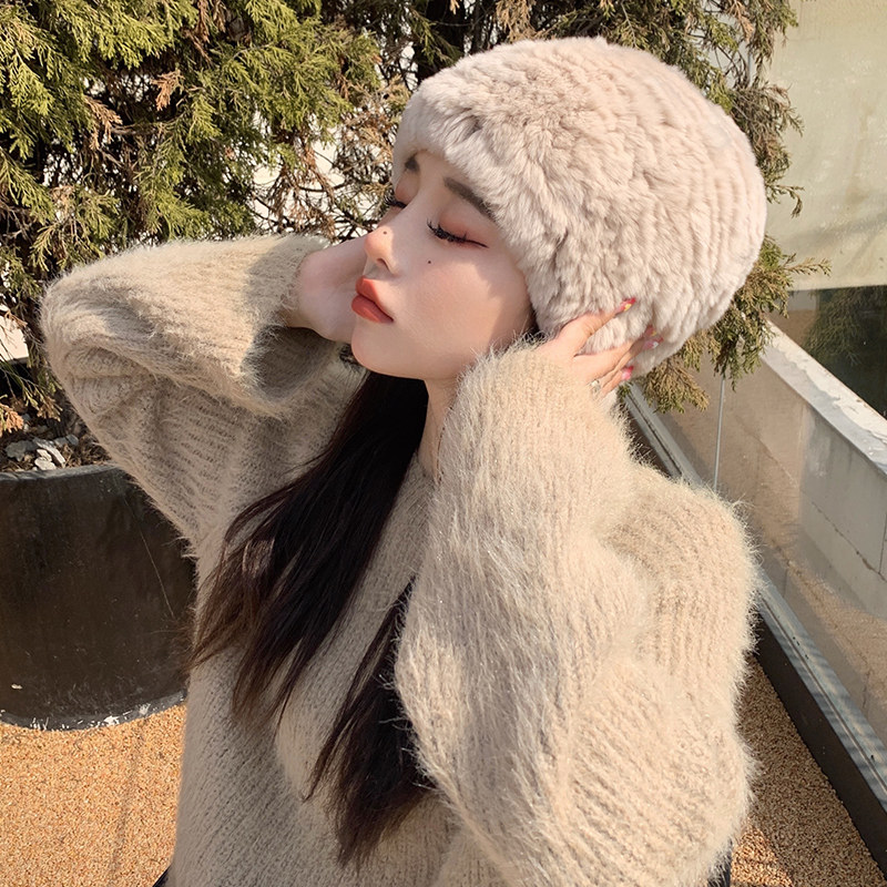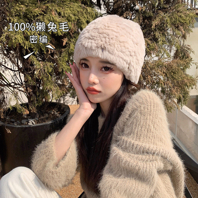 古灵阁 100%獭兔毛帽子女秋冬百搭毛毛绒保暖毛线包头皮草帽子潮