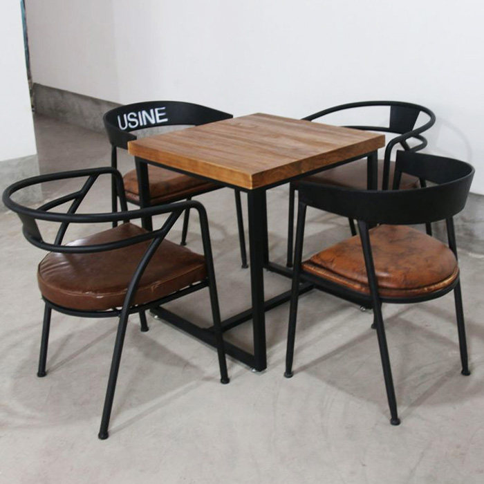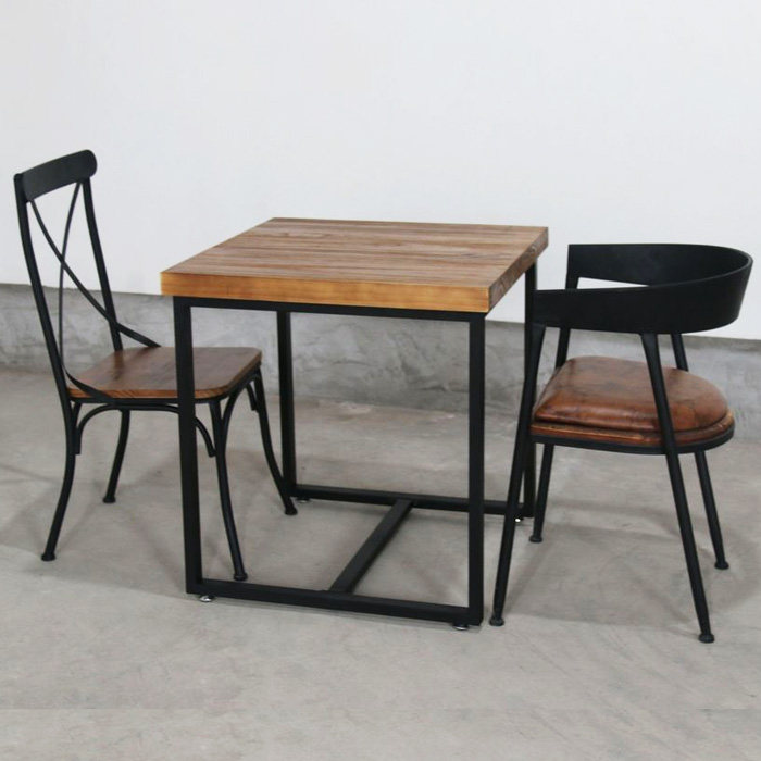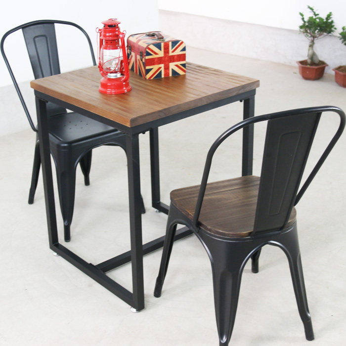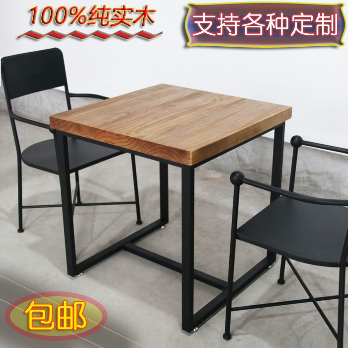 复古实木铁艺餐桌正方形小餐桌饭桌小方桌餐厅咖啡奶茶店桌椅组合