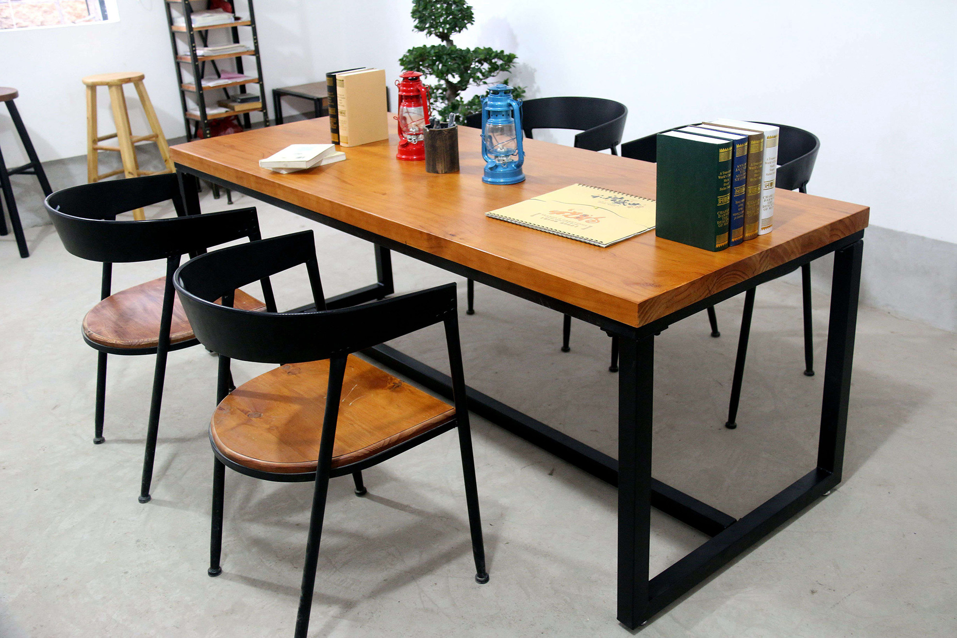 淘宝蜗居小镇创意工艺品,复古实木铁艺正方形小餐桌小方桌