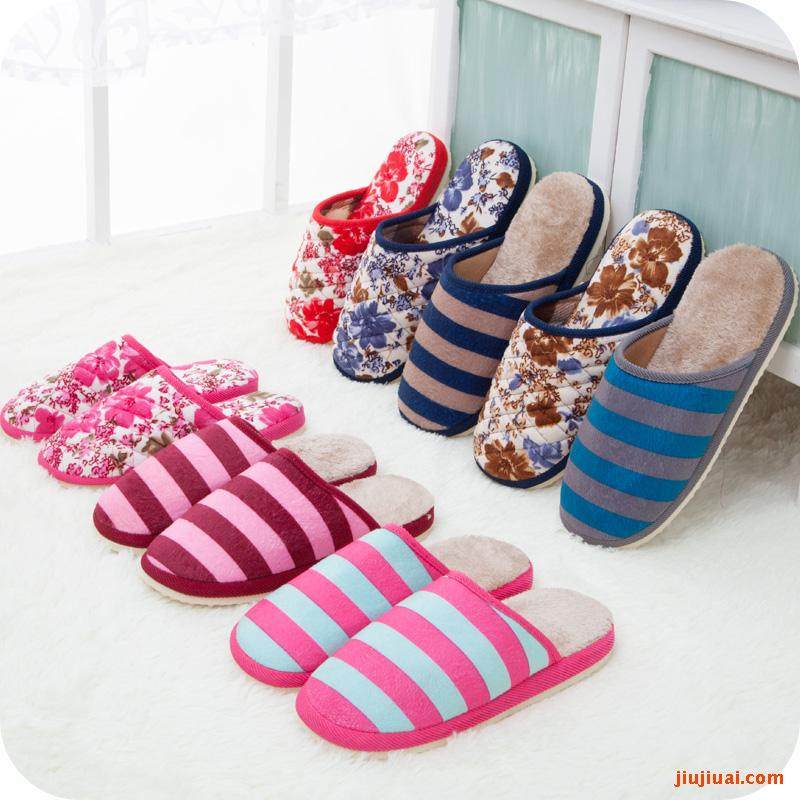 淘宝jiujiuai百货5玖玖爱百货,可爱简约冬季男女北极绒居家拖鞋