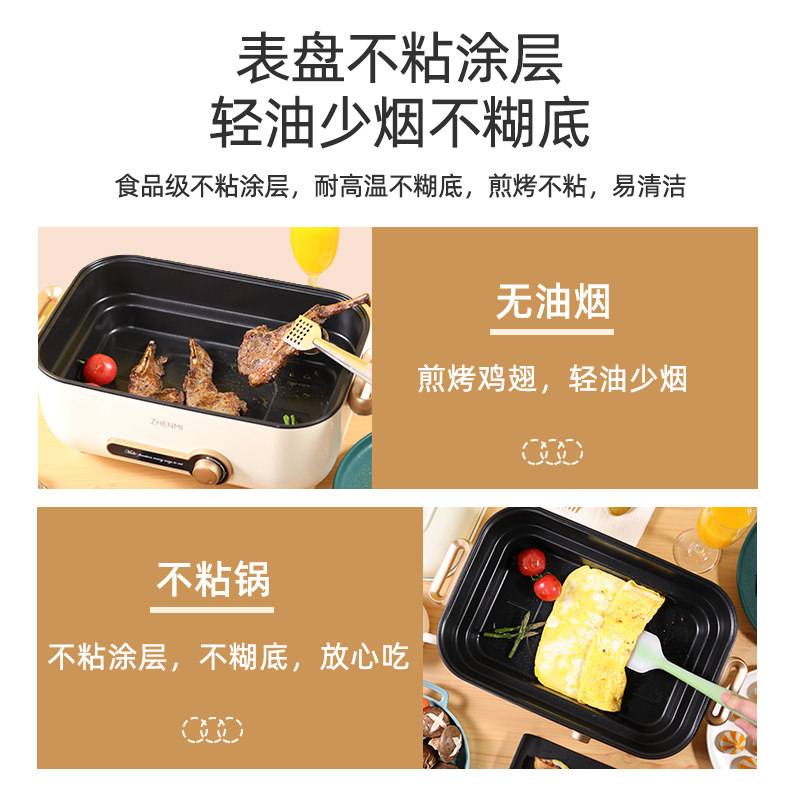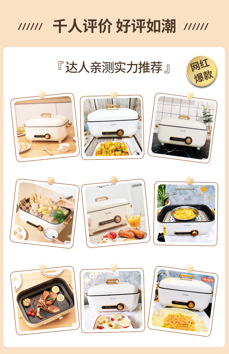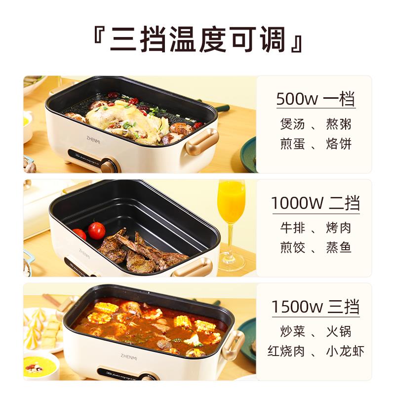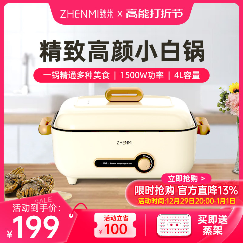 天猫臻米花趣专卖店,臻米电火火锅锅家用多功能4l电煮锅,精致高颜 蒸煮煎炒焖火锅一锅多用料理锅
