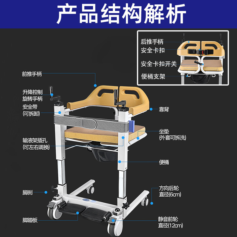 天猫华耐家居专营店,多功能移位机家用护理手摇升降椅,随意升降/自由调节/安全稳固