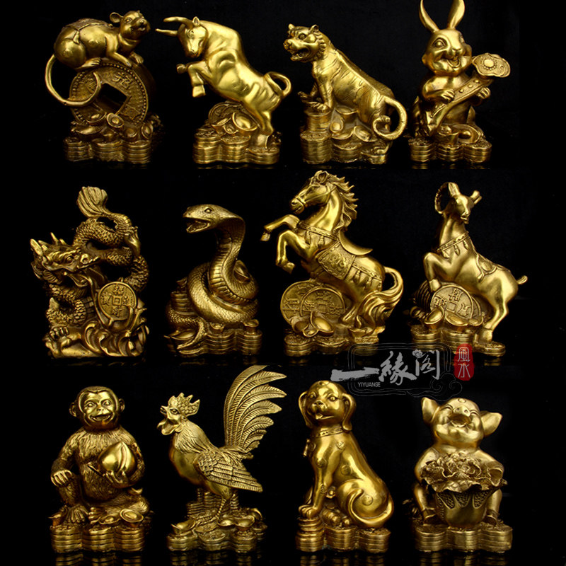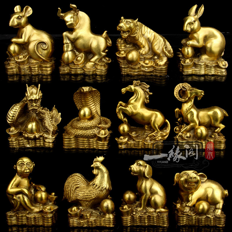 淘宝一缘阁,黄铜珠宝十二生肖摆件属鼠马羊猴猪