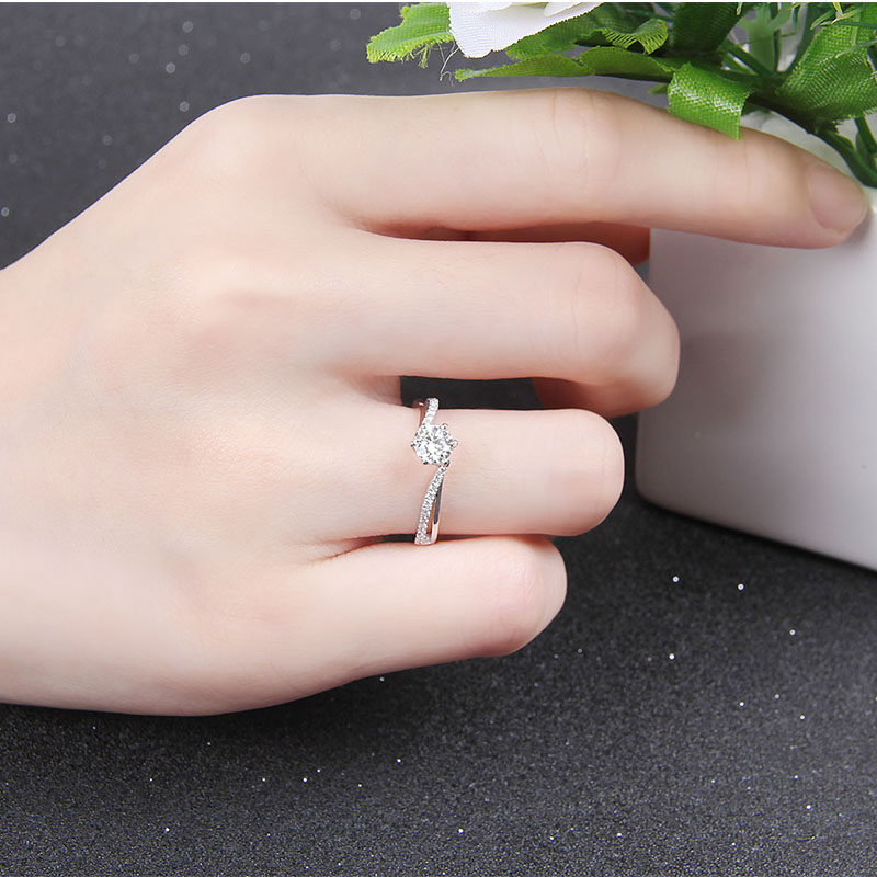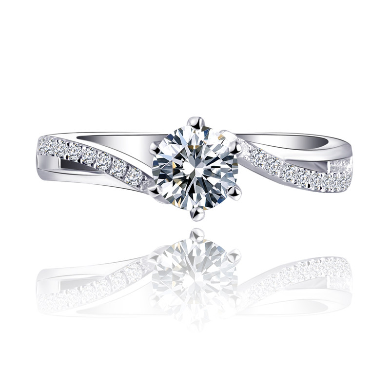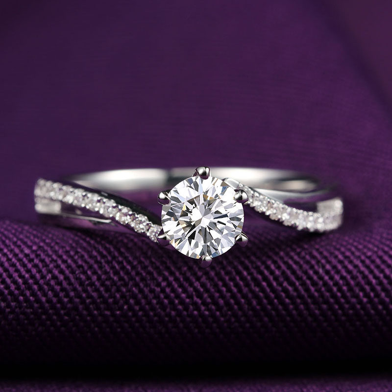 PT950钻戒 18K白金群镶钻戒女1克拉结婚求婚钻石戒指铂金婚戒对戒