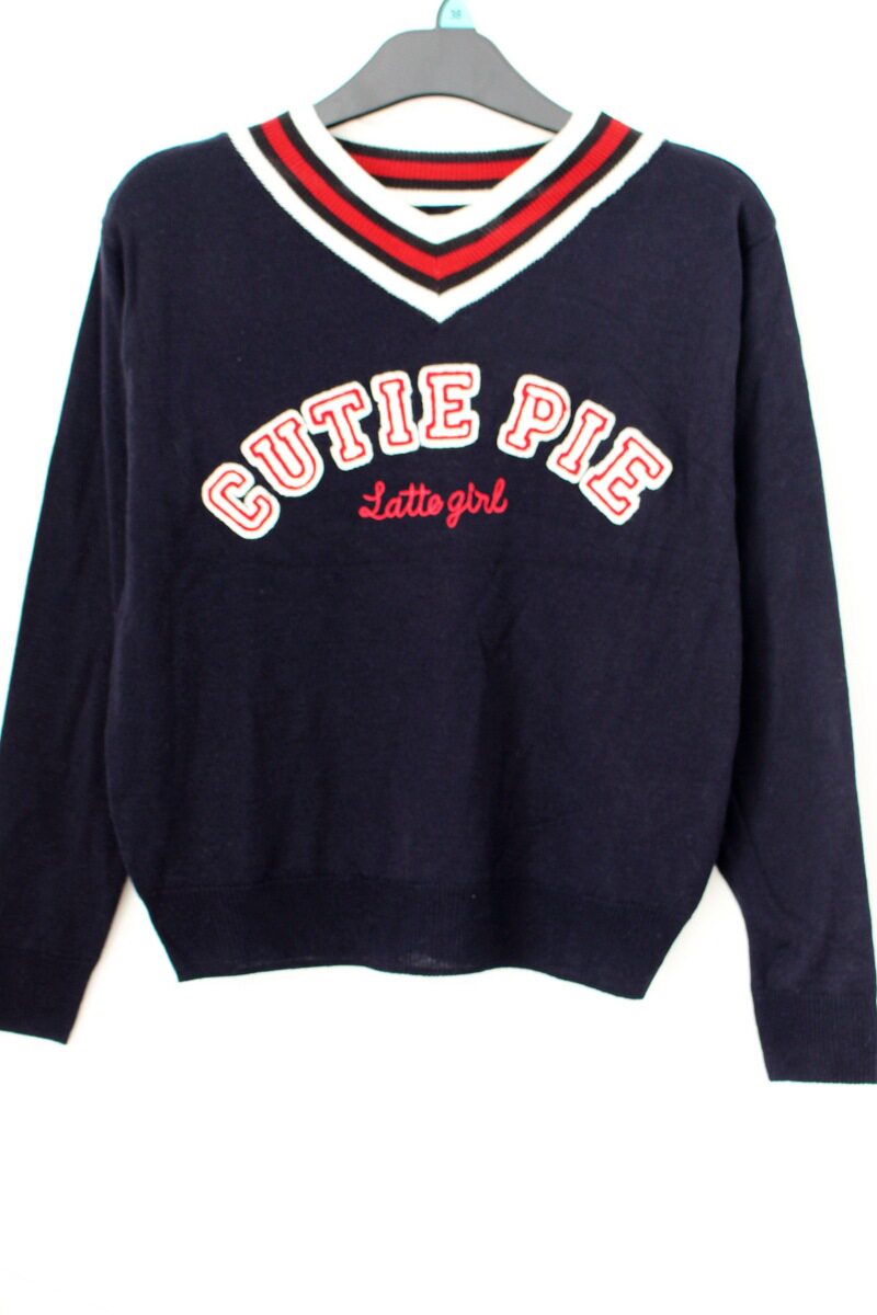 淘宝百合毛衣服饰工厂店,少女版v领中小学生学园风刺绣毛衣