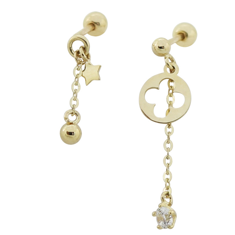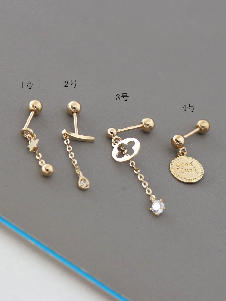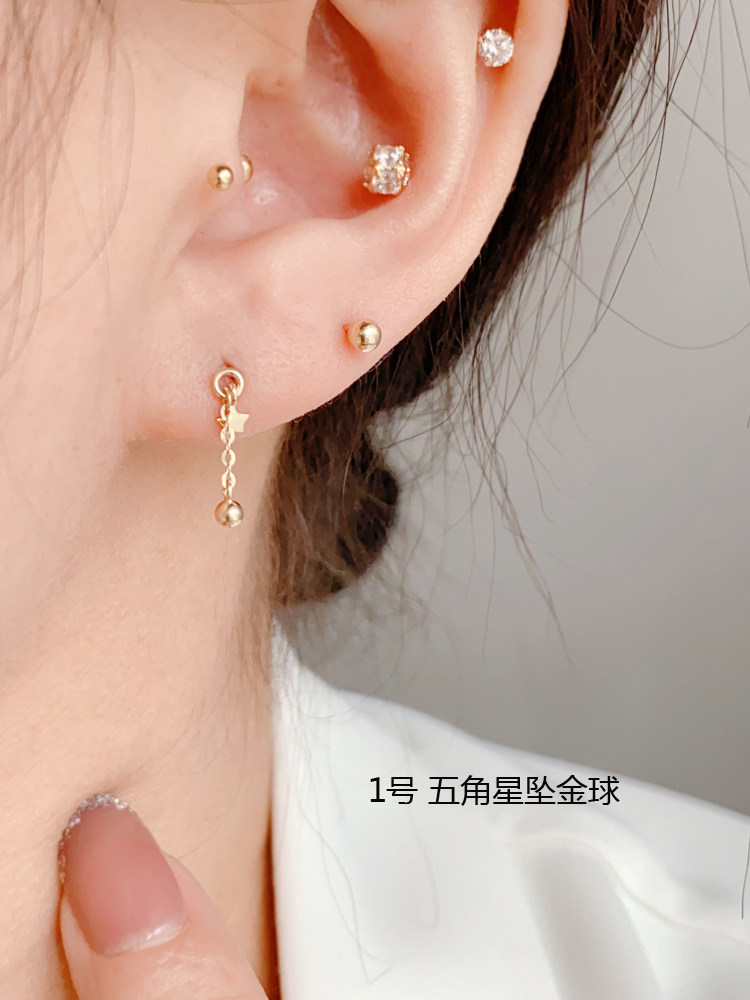 韩国进口黄金14K/10K金耳环女 一字杆五角星好运圆球拧螺丝耳骨钉