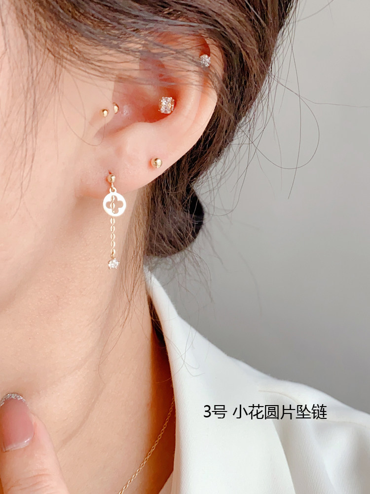 高级感~韩国纯10K金耳骨扣 素金别针山茶花蝴蝶结五角星迷你耳圈