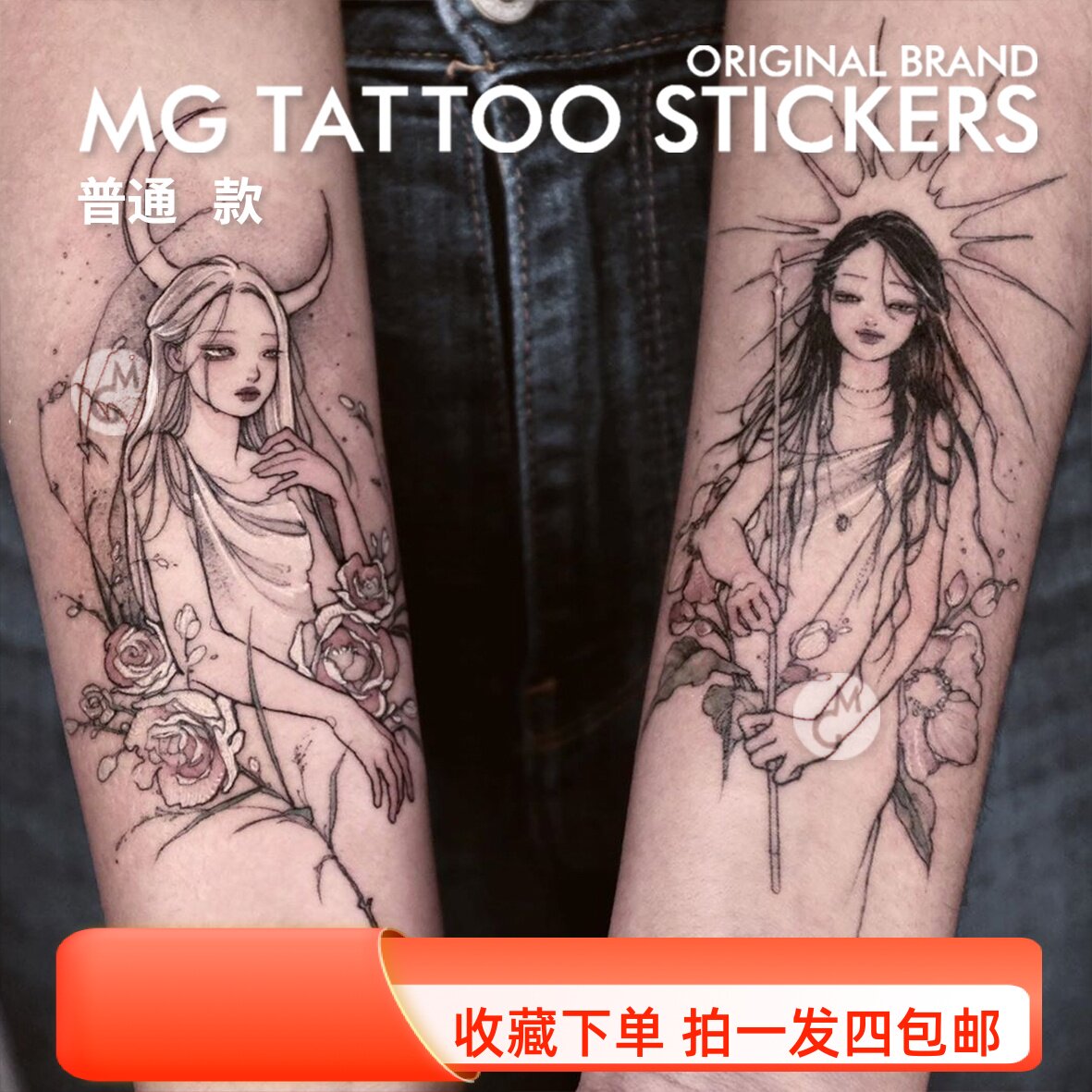 淘宝MG Tattoo Stickers 猫纸 潮牌,日月女神唯美清新一对装纹身贴纸