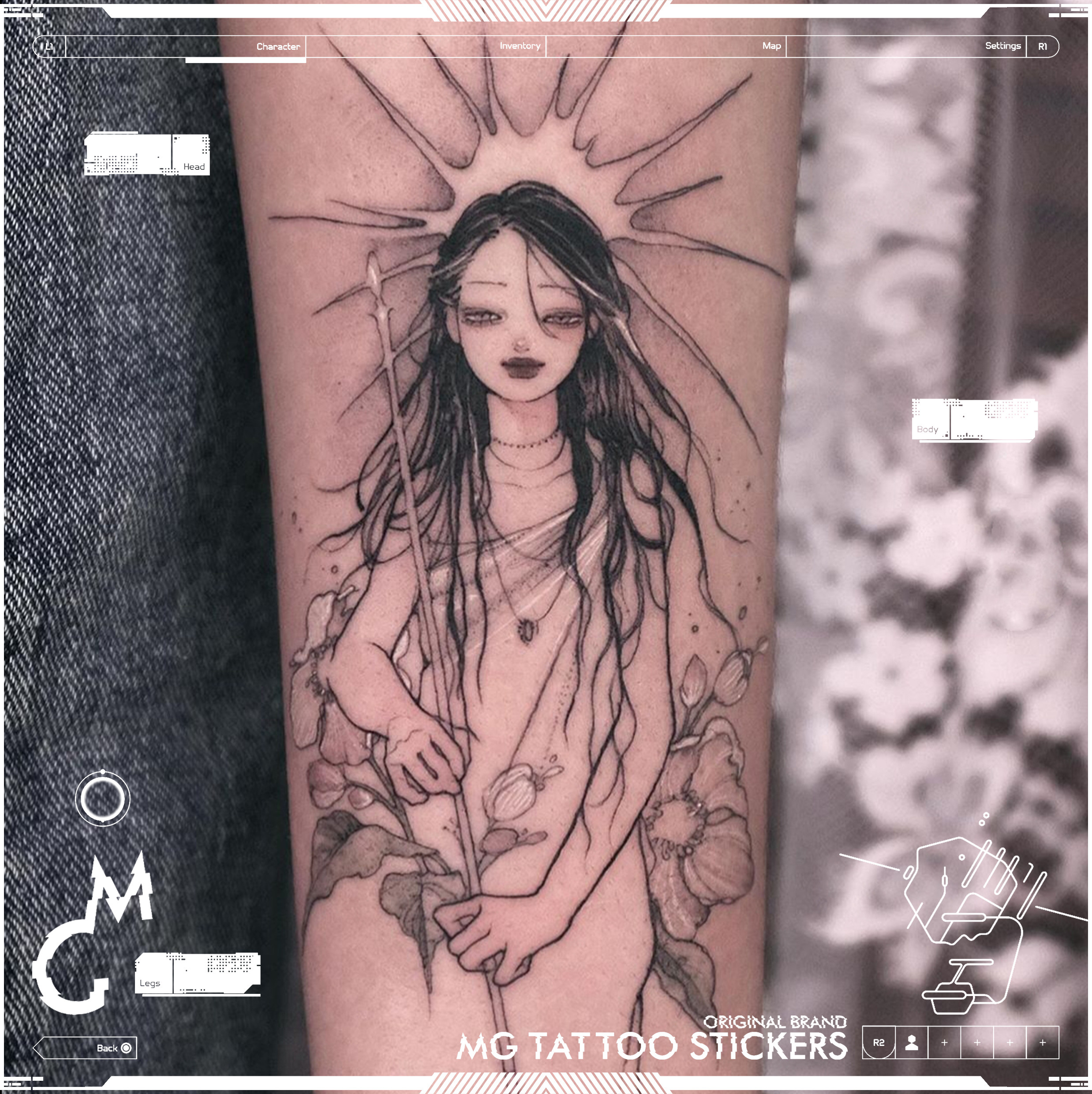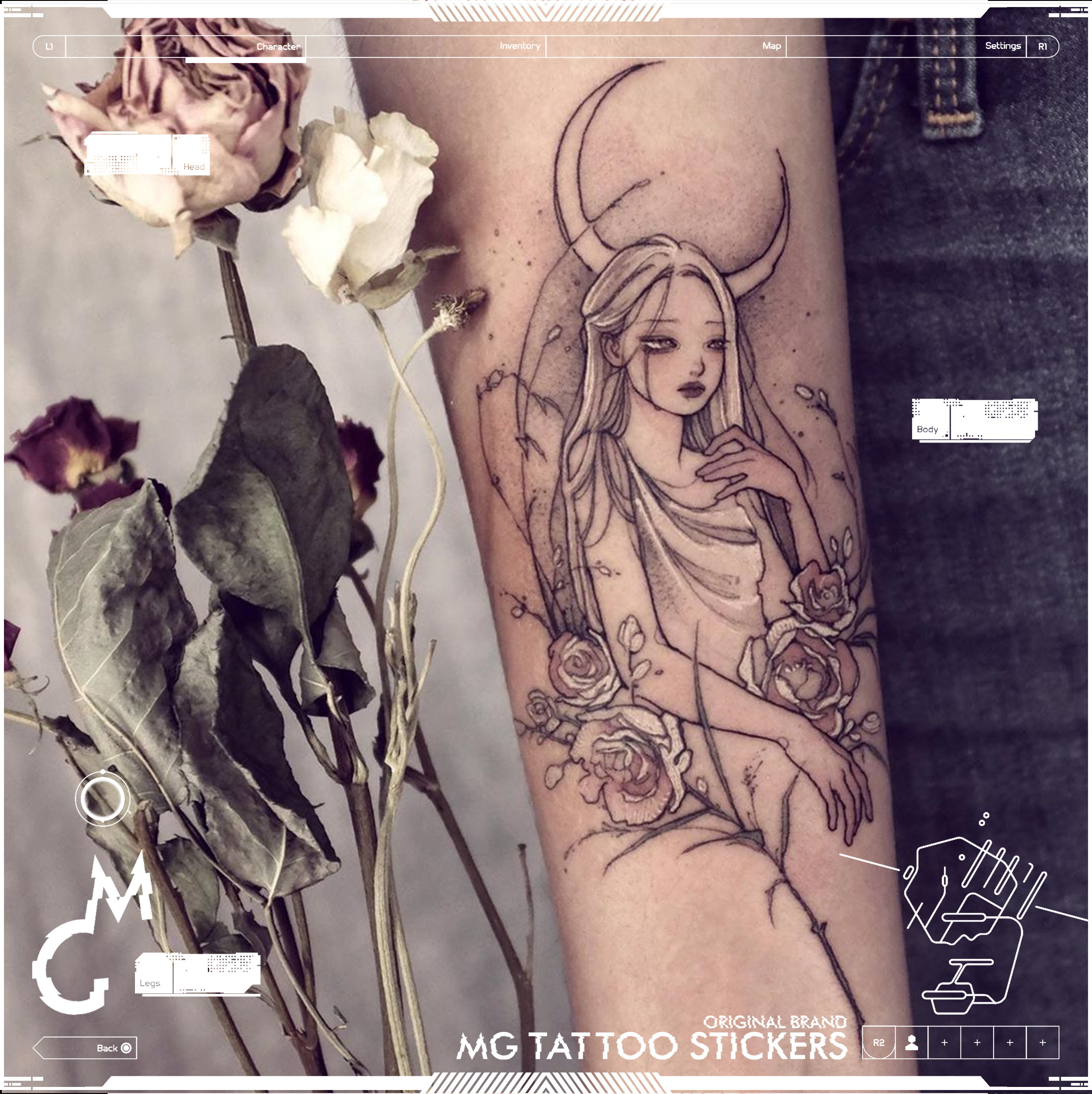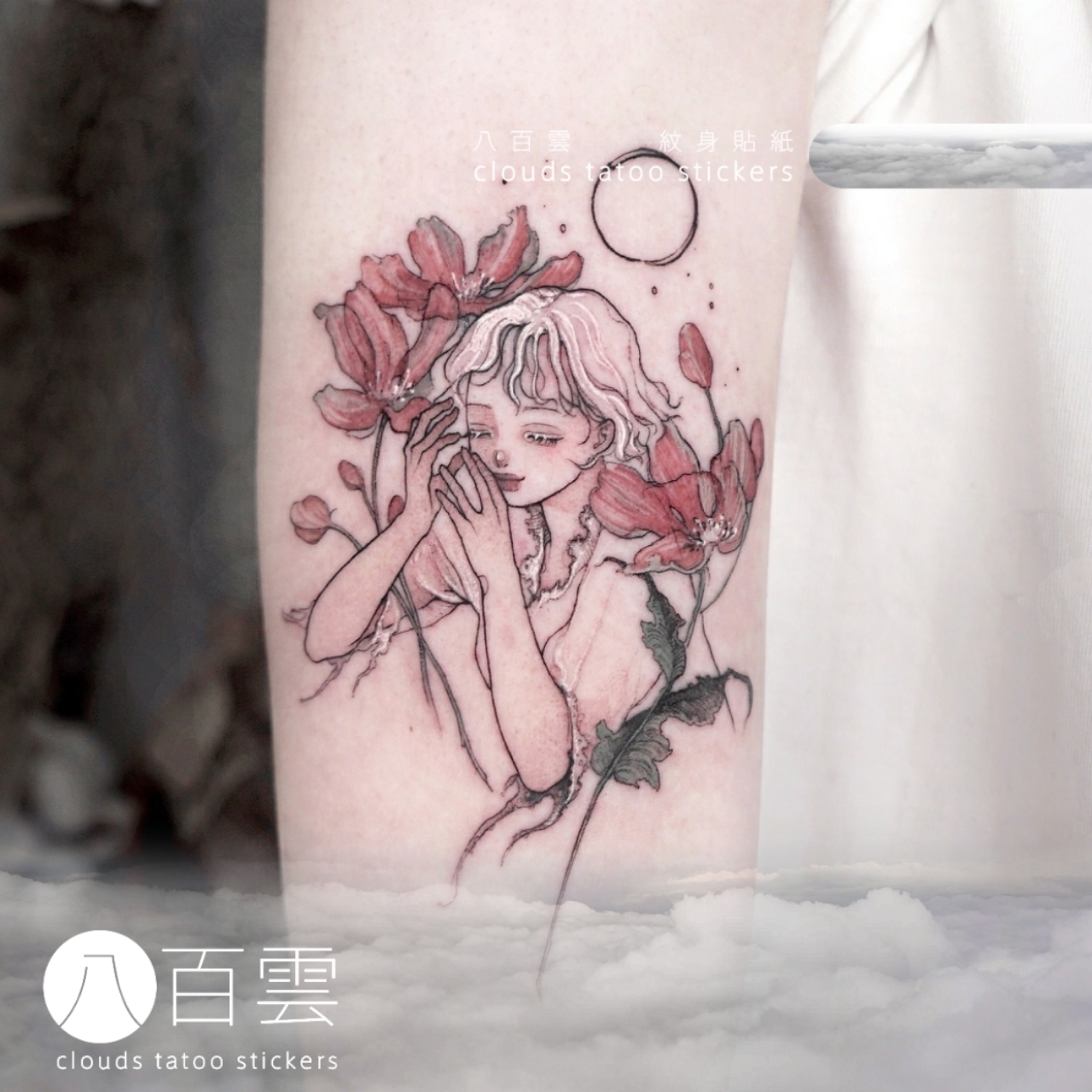 MG tattoo 日月女神 唯美清新少女心花臂防水纹身贴纸/一对装包邮
