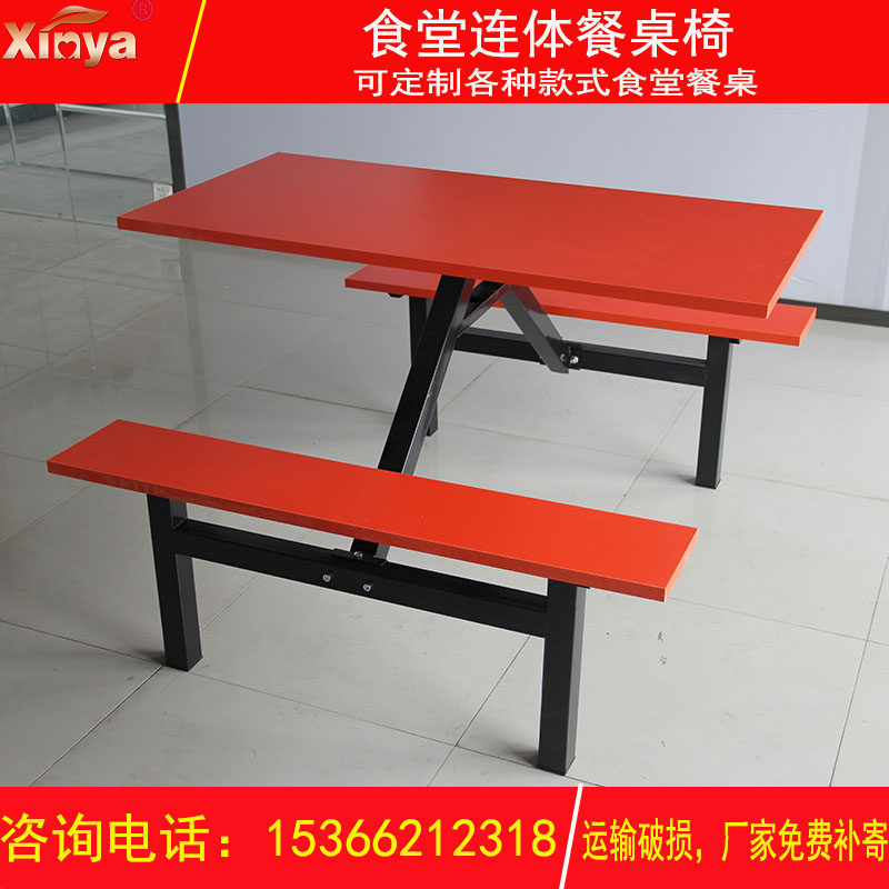 淘宝福瑞家具,厂家直销员工学生食堂连体餐桌椅 4/6/8人位不锈钢快餐桌椅组合