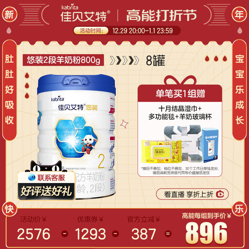 佳贝艾特官方旗舰店荷兰悠装幼儿羊奶粉配方2段800g*8