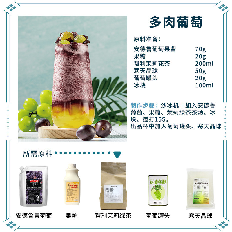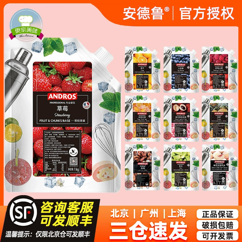 安德鲁草莓颗粒果酱1kg树莓芒果乐桃桃白桃茉莉葡萄奶茶烘焙原料