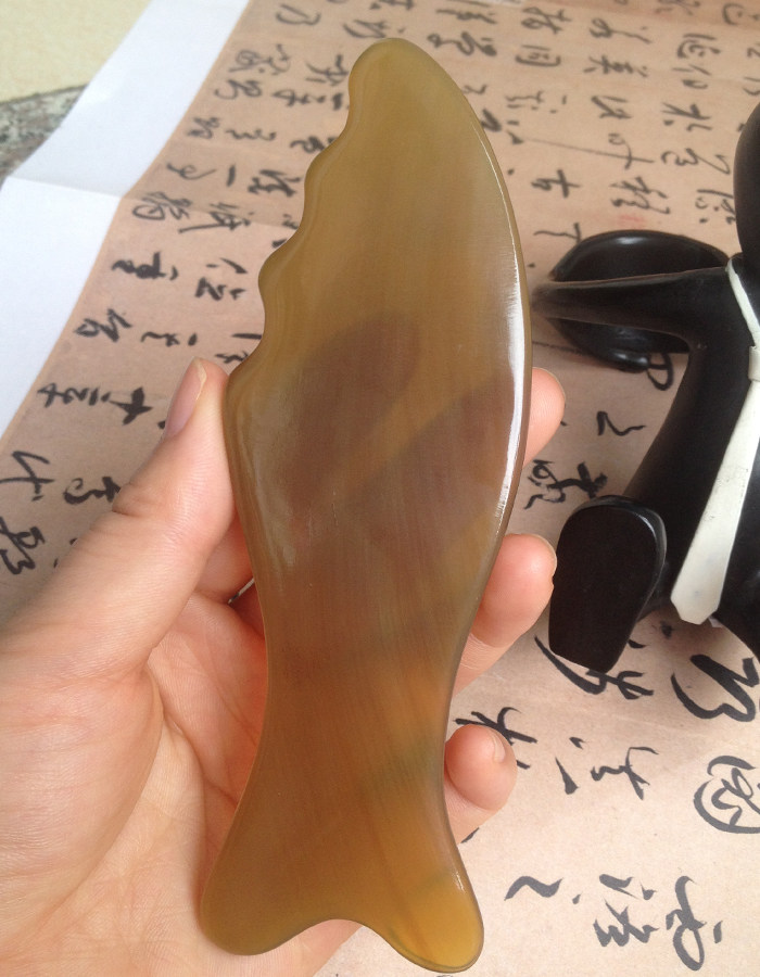 淘宝三味梳屋,手工加厚老白水牛角面部刮痧板