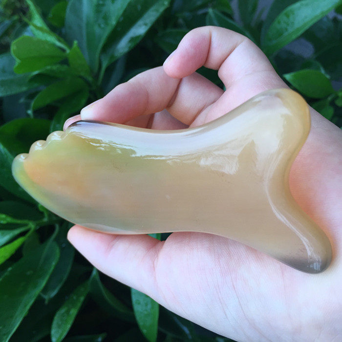 手工加厚老白水牛角面部刮痧板