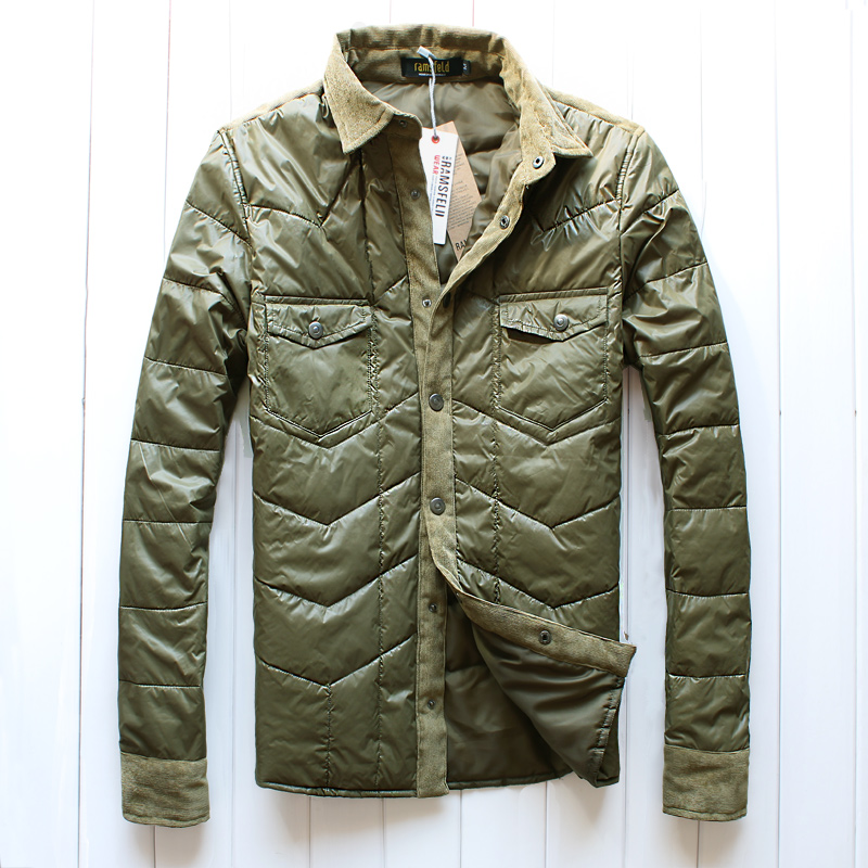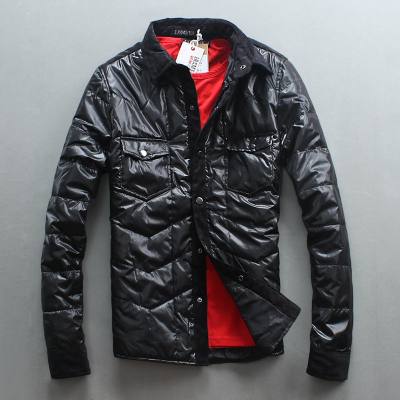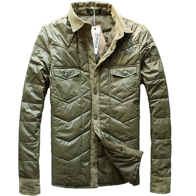 冬季新款潮男棉衣韩版修身男士衬衫领薄棉冬季保暖外套青少年潮服