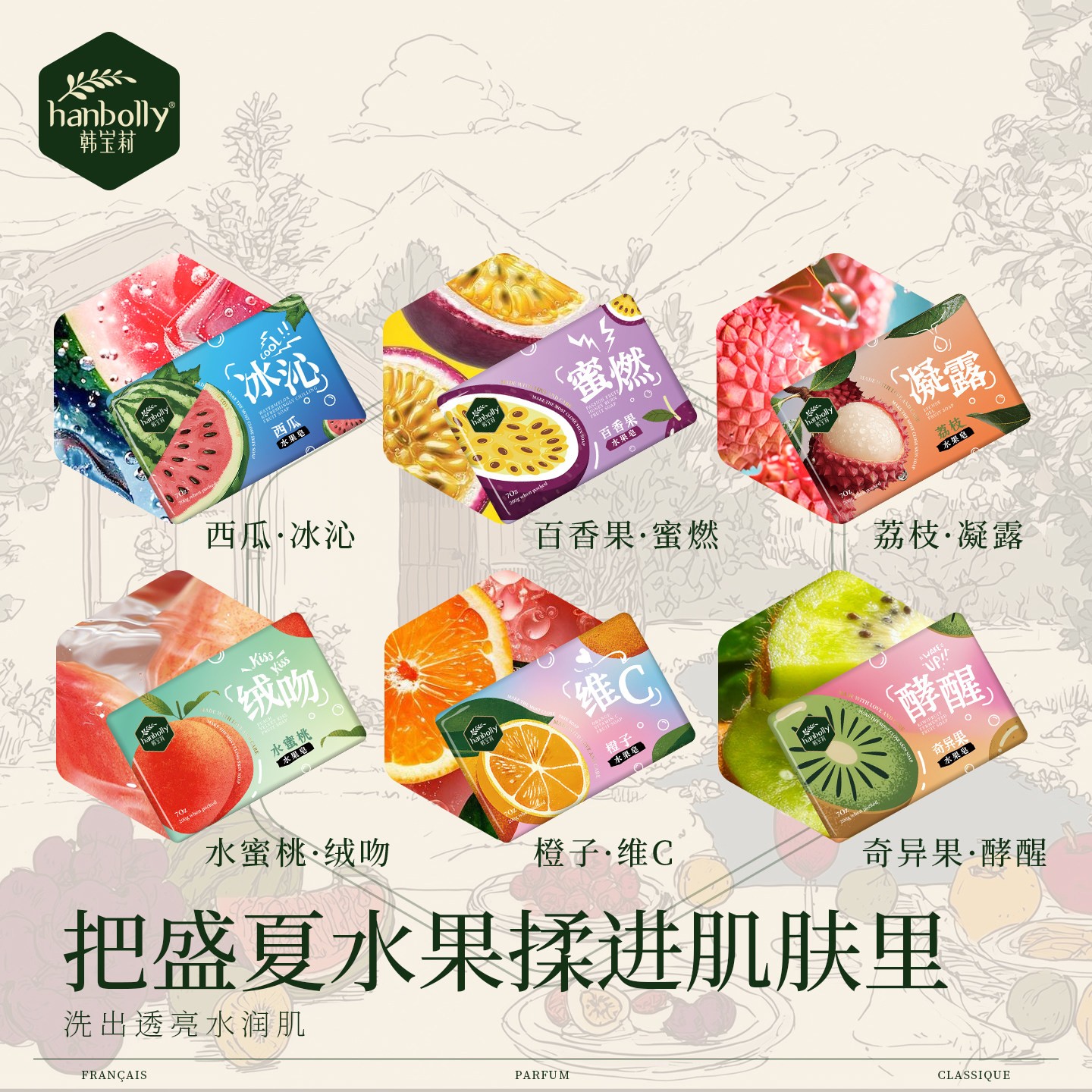 天猫hanbolly韩宝莉旗舰店,韩宝莉水果香皂洗澡润肤留香