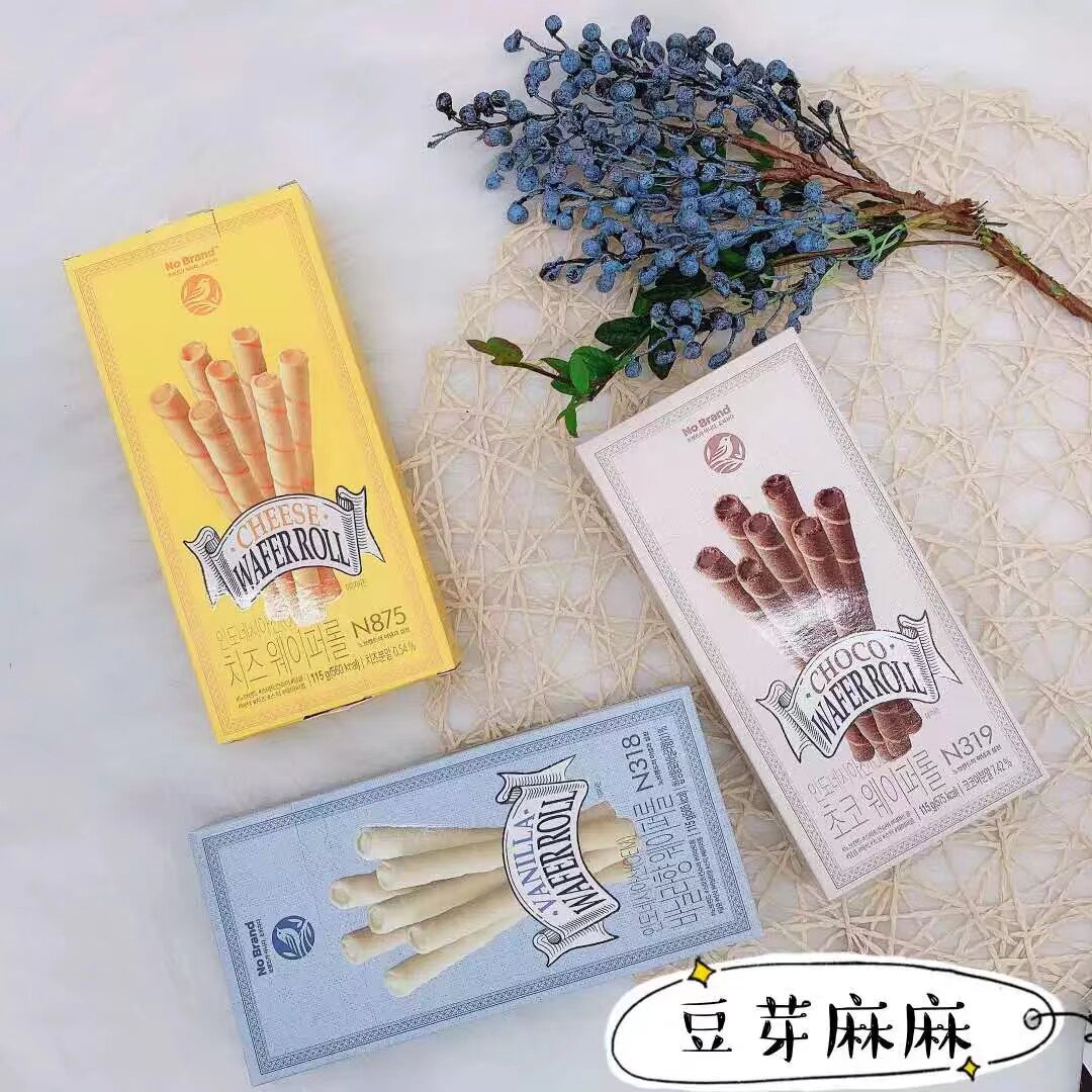 淘宝豆芽是个馋嘴猫,韩国直邮进口零食No Brand新品浓郁芝士香草巧克力蛋卷饼干威化卷