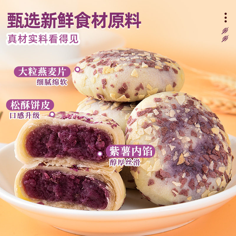 天猫板牙妹妹旗舰店,燕麦紫薯芋泥饼早餐整箱面包0o低减卡脂充饥解饿零食小吃休闲食品