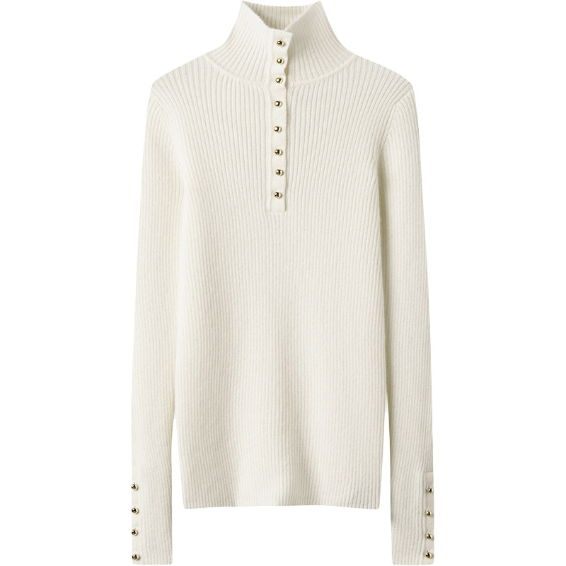 好穿美得心醉!金扣高领弹力修身羊绒衫女纯羊绒毛衣针织打底衫