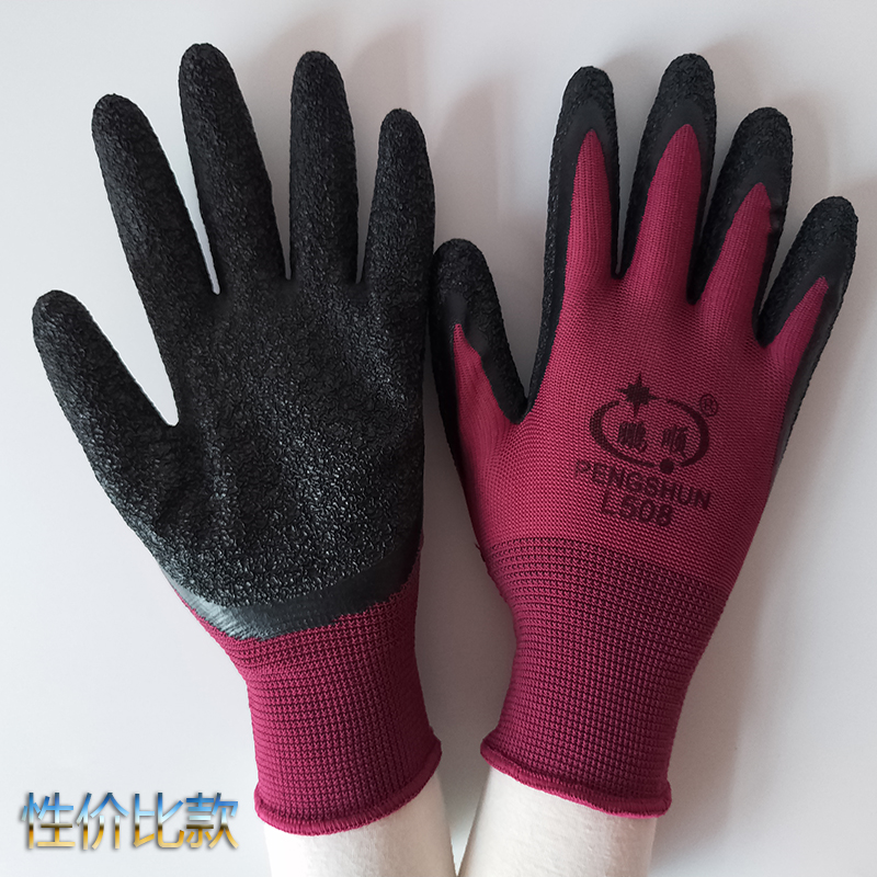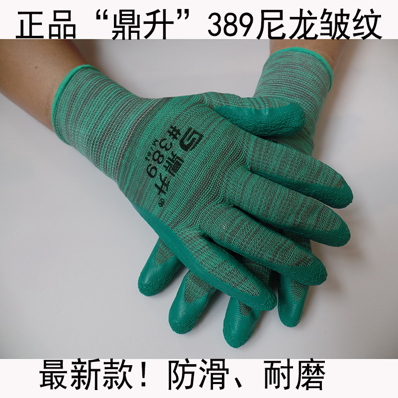 淘宝鑫泰工厂直销店,包邮#389尼龙乳胶皱纹手套防滑耐磨防水机械工作手套劳保乳胶