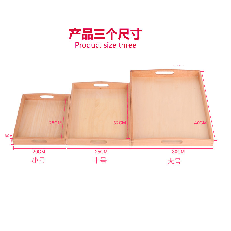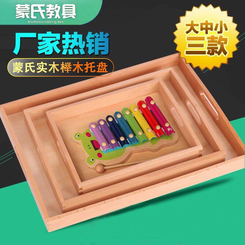 淘宝爬甜旗舢店,蒙氏托盘木制蒙台蒙特梭利榉木教具整理盘大中小带手柄教具托盘