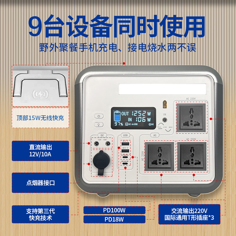 便携式磷酸铁锂移动电源220V大功率户外家用商用应急备用多功能