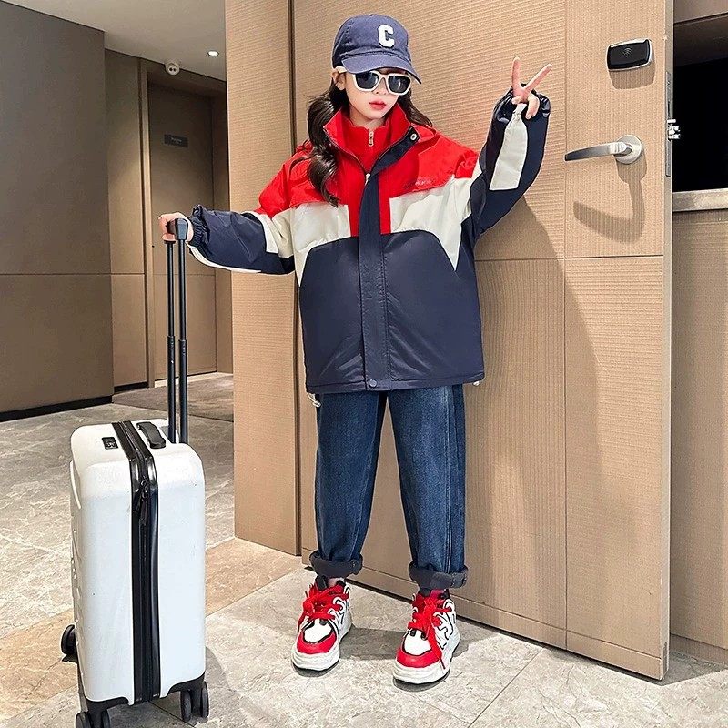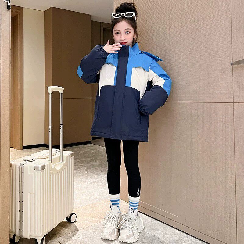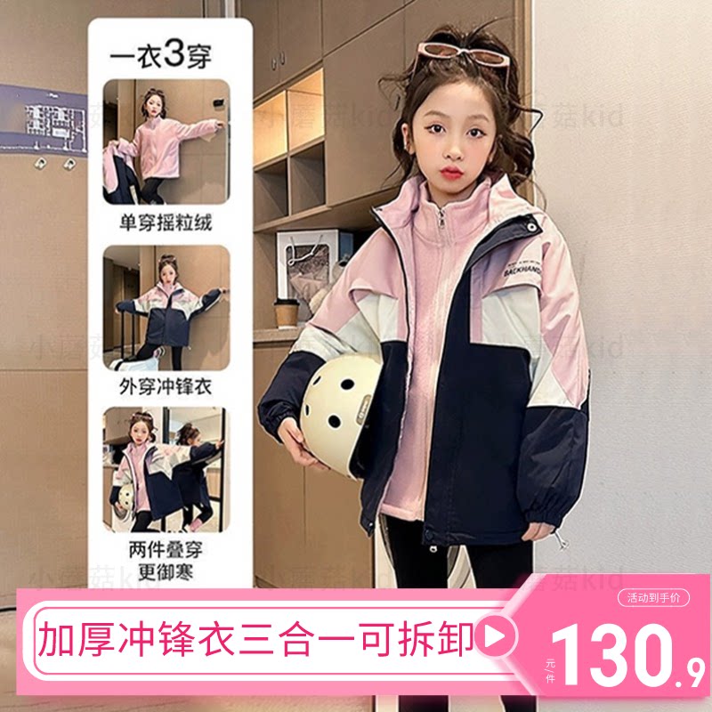 淘宝小蘑菇kid,大童韩版洋气加厚冲锋衣三合一加绒外套可拆卸2023新款秋冬装女童
