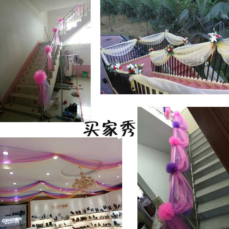 淘宝d[s272288902],纱幔婚庆装饰纱缦雪纱结婚新房婚房布置楼梯扶手装饰纱幔花球套餐