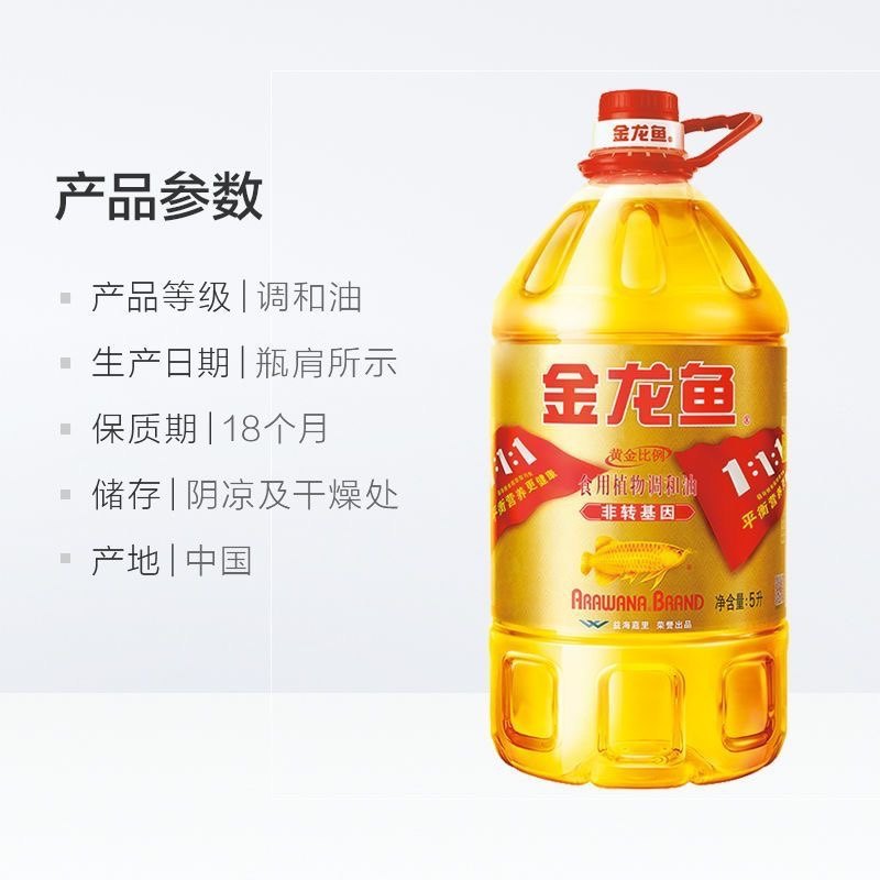 淘宝满多升粮油,非转基因金龙鱼黄金比例食用植物调和油5升*4桶 1.1.1调和油整箱
